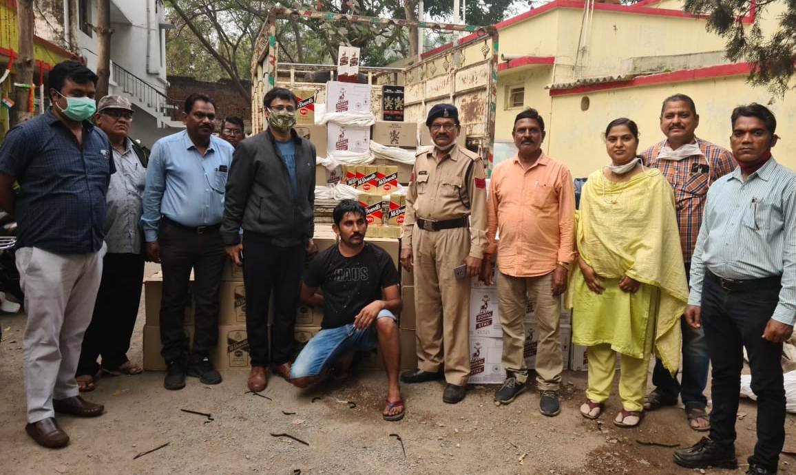 गौरतलब है कि आबकारी आयुक्त श्री निरंजन दास तथा प्रबंध संचालक श्री ए.पी. त्रिपाठी और कलेक्टर रायपुर डॉ. एस.भारतीदासन के निर्देश पर आबकारी विभाग जिला रायपुर द्वारा अवैध शराब के विरूद्ध लगातार कार्यवाही की जा रही है। उपायुक्त आबकारी श्री अरविन्द पाटले के निर्देश पर सहायक जिला आबकारी अधिकारी श्री अजय पांडे द्वारा 29 जनवरी को मुखबीर से मिली सूचना पर सब्जी मंडी डूमरतराई के पास बोलेरों पिकअप क्रमांक सी.जी.04 जे.सी. 9164 से 22 पेटी शराब (10 पेटी रायल स्टैग, 8 पेटी रायल चैलेंज, 4 पेटी नंबर-1) हरियाणा में विक्रय हेतु वैध बरामद कर आरोपी मयूर नानवानी वल्द स्व. मनोज कुमार नानवानी को गिरफ्तार कर उसकी निशानदेही पर गोगांव स्थित गोदाम से 77 पेटी शराब (रायल स्टैग 34 पेटी, नम्बर 1-43 पेटी) हरियाणा में विक्रय हेतु वैध कुल 891 लीटर मदिरा जप्त किया गया है। आरोपी के विरूद्ध आबकारी अधिनियम की धारा 34(1), 34(2) एवं 36 के तहत प्रकरण दर्ज कर विवेचना में लिया गया है। उक्त कार्रवाई में सहायक जिला आबकारी अधिकारी श्री अजय पांडे, आबकारी उप निरीक्षक श्री जी.आर. आड़े, अनिल मित्तल, पंकज कुजूर, अरविंद साहू, आबकारी मुख्य आरक्षक श्री रामकुमार वर्मा, सुरेन्द्र गिरी गोस्वामी एवं आबकारी आरक्षक श्रीमती अनुला झाड़े मौजूद थे।