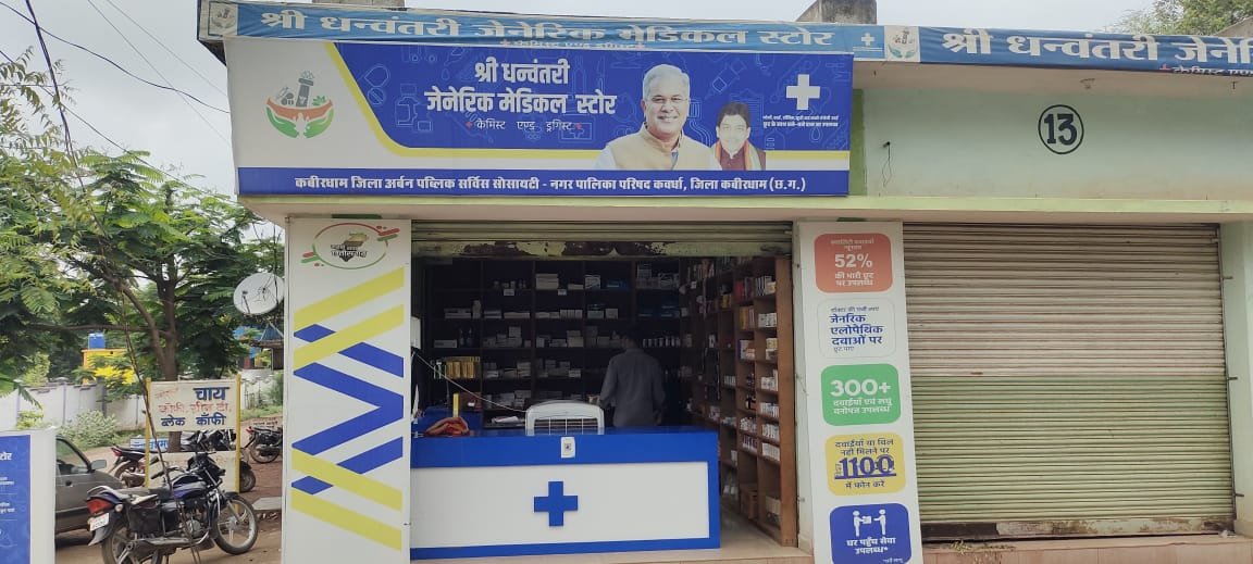 कलेक्टर जनमेजय महोबे ने बताया कि राज्य शासन द्वारा धन्वंतरी जेनेरिक दवाई दुकान का शुभारंभ किया गया है। जेनेरिक मेडिकल स्टोर्स में 300 से अधिक मेडिसिन, सनफॉरमा, सिप्ला, मेनकाइन्ड, डॉक्टर रेडडी इत्यादि, सर्जिकल आइटम, छत्तीसगढ़ हर्बल प्रोडक्ट उपलब्ध हैं। जिले में अब तक 85 लाख 95 हजार 429 रूपए की दवाई का विक्रय किया गया है। जिसका एमआरपी मूल्य 02 करोड़ 18 लाख 15 हजार 756 रूपए है। इस योजना के तहत 29 हजार 250 हितग्राही लाभान्वित हुए है। इससे हितग्राहियों को 1 करोड़ 32 लाख 20 हजार 327 रूपए की बचत हुई है। कबीरधाम जिले के 6 नगरीय निकायों में धनवंतरी मेडिकल स्टोर का संचालन किया जा रहा है, जिससे नागरिकों को सस्ते दाम पर दवाइयां उपलब्ध हो रही है। संचालित मेडिकल स्टोर में सर्दी, खांसी, बुखार, ब्लड प्रेशर जैसी आम बीमारियों के साथ-साथ गंभीर बीमारियों की जेनेरिक दवाएं, एंटीबायोटिक, सर्जिकल आइटम, वन विभाग के संजीवनी के उत्पाद, सौंदर्य प्रसाधन उत्पाद और शिशु आहार भी उपलब्ध है। कवर्धा सहित नगर पंचायत बोड़ला, पाण्डातराई, पंडरिया, सहसपुर लोहारा और पिपरिया में भी जेनेरिक मेडिकल स्टोर संचालित है।