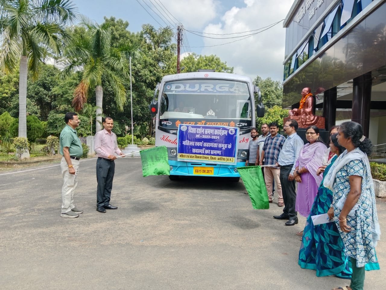 जिले के कलेक्टर श्री कलेक्टर श्री विनय कुमार लंगेह के मार्गदर्शन में महिला एवं बाल विकास विभाग द्वारा दिशा दर्शन भ्रमण कार्यक्रम के तहत स्व सहायता समूहों की 50 महिला सदस्यों को मध्यप्रदेश के डिंडोरी जिले में कोदो प्रसंस्करण, लाख उत्पादन आदि के आधुनिक व उन्नत कृषि, उत्पादन, प्रसंस्करण को सीखने, समझने के लिए रवाना हुए।
