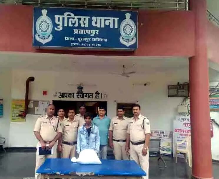 सूरजपुर रविवार को सूरजपुर जिला संवाददाता सूरज साहू से मिली जानकारी के अनुसार,,,आपको बता दें कि सूरजपुर पुलिस अधीक्षक आई कल्याण एलिसेला के निर्देशन में अवैध कारोबार करने वालों पर पुलिस लगातार कार्रवाई करने में लगी हुई है।इसी क्रम में रविवार को थाना प्रतापपुर पुलिस को मुखबीर से सूचना प्राप्त हुआ कि एक व्यक्ति मोटर सायकल में गांजा लेकर अम्बिकापुर से वाड्रफनगर की ओर जा रहा है। थाना प्रतापपुर पुलिस ने सूचना पर त्वरित कार्यवाही कर ग्राम गणेशपुर चिटकाबहरा में घेराबंदी कर रफीक मंसूरी पिता सुलेमान गनी उम्र 23 निवासी अम्बिकापुर को पकड़ा जिसके कब्जे से 3 किलो 800 ग्राम गांजा कीमत करीब 57000 रूपये का जप्त किया है।मामले में गांजा एवं परिवहन में प्रयुक्त मोटर सायकल जप्त कर आरोपी के विरूद्व धारा 20(बी) एनडीपीएस एक्ट के तहत कार्यवाही कर गिरफ्तार किया गया है। इस कार्यवाही में थाना प्रभारी प्रतापपुर किशोर केरकेट्टा, एएसआई मंत्रीराम मिंज, प्रधान आरक्षक रजनीश त्रिपाठी, आरक्षक इन्द्रजीत सिंह, राजेश तिवारी, अवधेश कुशवाहा व सहदेव राम सक्रिय रहे।