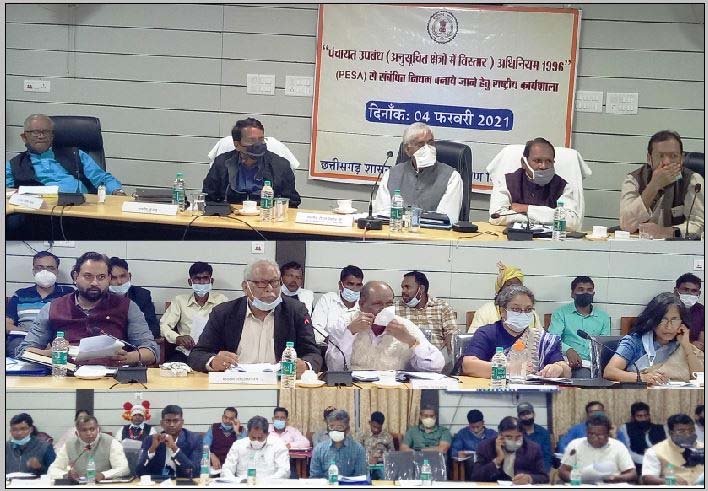 कार्यशाला में सर्व आदिवासी समाज की ओर से भारतीय प्रशासनिक सेवा के पूर्व अधिकारी सर्वश्री बी.पी.एस. नेताम, एन.एस. मंडावी, जी.एस. धनंजय, के. राजू, भारतीय पुलिस सेवा के पूर्व अधिकारी श्री ए.आर. कुर्राम, सर्वोच्च न्यायालय की अधिवक्ता सुश्री सुमोना खन्ना, मानवशास्त्री सुश्री नंदिनी सुंदर, ओड़िशा के श्री तुषार दास, झारखण्ड के श्री करमचंद मारडी, महाराष्ट्र के श्री देवजी भाई तोफा, आदिवासी समाज के प्रतिनिधिगण सर्वश्री अश्विनी कांगे, विनोद नागवंशी तथा हरिवंश मिरी ने भी ‘पेसा’ संबंधी नियमों पर अपने सुझाव दिए।
