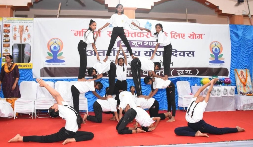 धमतरी में योग दिवस कार्यक्रम के दौरान निःशुल्क स्वास्थ्य जांच शिविर का आयोजन किया गया, जिसमें बीपी और शुगर जांच के साथ दवा वितरण भी किया गया. आयुष विभाग द्वारा स्वास्थ्य लाभ हेतु आयुर्वेदिक काढ़ा का वितरण किया गया. बच्चों ने विभिन्न आसनों का प्रदर्शन किया और कार्यक्रम के अंत में अतिथियों ने सभी बच्चों को सम्मानित किया. साथ ही जल संरक्षण के संदेश को प्रमोट करने के लिए जल जगार अभियान के तहत कलश में जल प्रवाहित किया गया.मंत्री लखन लाल देवांगन ने कबीरधाम में किया योगाभ्यासश्रम मंत्री लखन लाल देवांगन योग दिवस के मौके पर कबीरधाम जिला मुख्यालय कवर्धा के पीजी कॉलेज मैदान में जिला स्तरीय योगाभ्यास कार्यक्रम में मुख्य अतिथि के रूप में शामिल हुए. मंत्री देवांगन ने कहा कि योग न केवल शरीर और मन को स्वस्थ रखता है, बल्कि यह पूरे विश्व को शांति और सद्भावना का संदेश भी देता है। उन्होंने सभी से नियमित योगाभ्यास करने का आग्रह किया। कार्यक्रम में जिले के गणमान्य नागरिक, जनप्रतिनिधि, स्कूली छात्र-छात्राएं और स्वामी विवेकानंद एकेडमी के खिलाड़ियों ने सामूहिक रूप से योगाभ्यास किया।