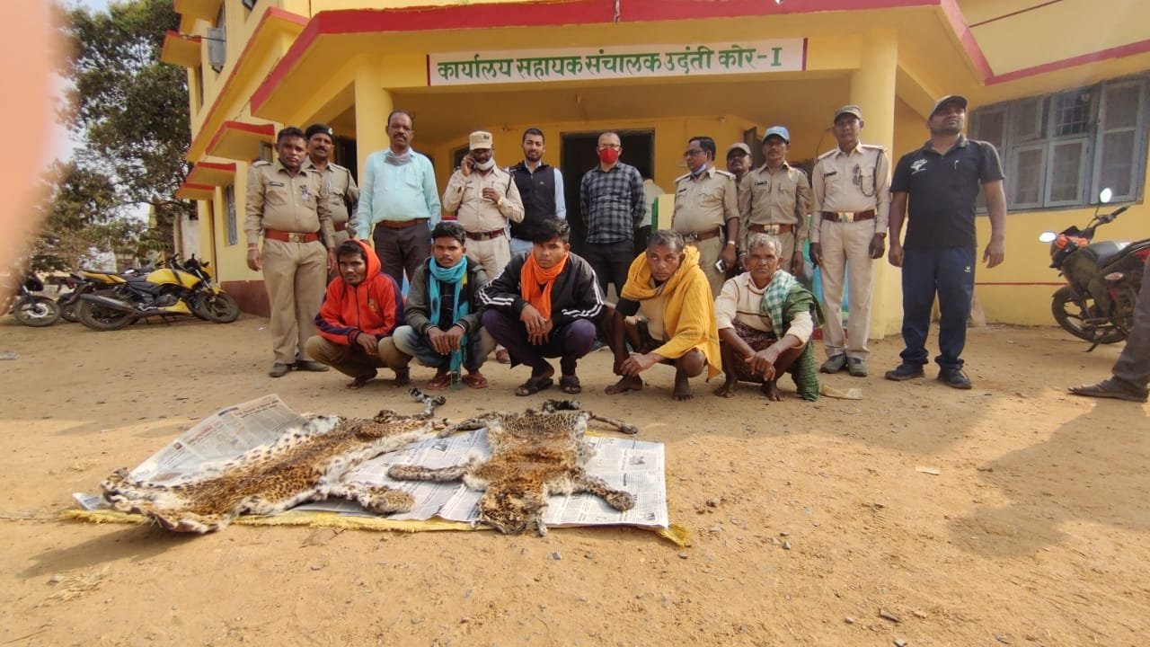 राज्य के उदंती सीतानदी टायगर रिजर्व गरियाबंद की गठित एंटी पोचिंग टीम द्वारा गत दिवस 27 जनवरी को 2 नग तेन्दुआ खाल की तस्करी में 5 आरोपियों के खिलाफ अपराध के प्रकरण दर्ज कर उनसे 2 तेन्दुआ खाल तथा 2 वाहनों की जप्ती की गई है। साथ ही इसमें संलिप्त सभी 5 आरोपियों को जेल दाखिला करा दिया गया है।