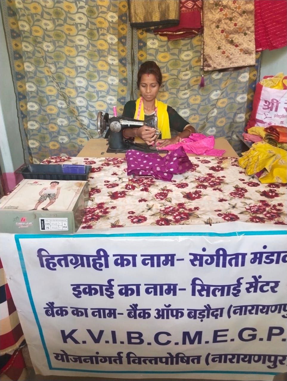 जिला नारायणपुर स्थित ग्राम गढ़बेंगाल की संगीता मण्डावी ने बताया कि मैं कक्षा 12वीं तक पढ़ाई करने के बाद सिलाई सेंटर से सिलाई का प्रशिक्षण लेकर काम कर रही हूं। मेरे पास सिलाई मशीन लेने के लिए पैसे थे। मेरी सहेली के द्वारा जानकारी प्राप्त हुआ कि छत्तीसगढ़ खादी ग्रामोद्योग विभाग जिला पंचायत के माध्यम से मुख्यमंत्री रोजगार सृजन कार्यक्रम अंतर्गत 35 प्रतिशत अनुदान राशि के साथ ऋण प्रदाय किया जाता है। जानकारी मिलने के बाद संगीता मण्डावी ने खादी ग्रामोद्योग विभाग से संपर्क कर अपना ऋण प्रकरण फार्म नियमानुसार भरकर विभाग में जमा किया। तत्पश्चात विभाग द्वारा परीक्षण करने के पश्चात 3 लाख रूपये ऋण स्वीकृत कर वस्त्र निर्माण हेतु राशि प्रदान किया गया, जिससे वह सिलाई सेंटर स्थापित कर महीने में लगभग 6 से 7 हजार रूपये की आमदनी कर रही है और अपने परिवार का भरण पोषण कर नियमित रूप से ऋण अदा कर रही हैं। उन्होने राज्य सरकार के उक्त योजना की प्रशंसा करते हुए मुख्यमंत्री श्री भूपेश बघेल को धन्यवाद ज्ञापित किया है।