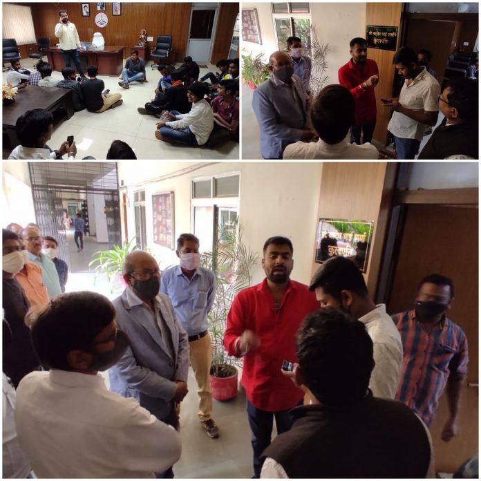 रायपुर। प्रदेश के पत्रकारिता विश्वविद्यालय में आज छात्रों ने कुलपति के चेंबर का घेराव किया। उनका आरोप है कि कुशाभाऊ ठाकरे पत्रकारिता विश्वविद्यालय के कुलपति जब से कुलपति का पदभार संभाला है, तबसे कुलपति छात्रों से नहीं मिलते हैं और न ही किसी तरह की छात्रों की परेशानी को समझने का प्रयास करते हैं। ऐसे में एक नहीं कई बार छात्रों ने उनसे मिलने की कोशिश की मगर वह हमेशा गायब मिलते ही नजर आए है।