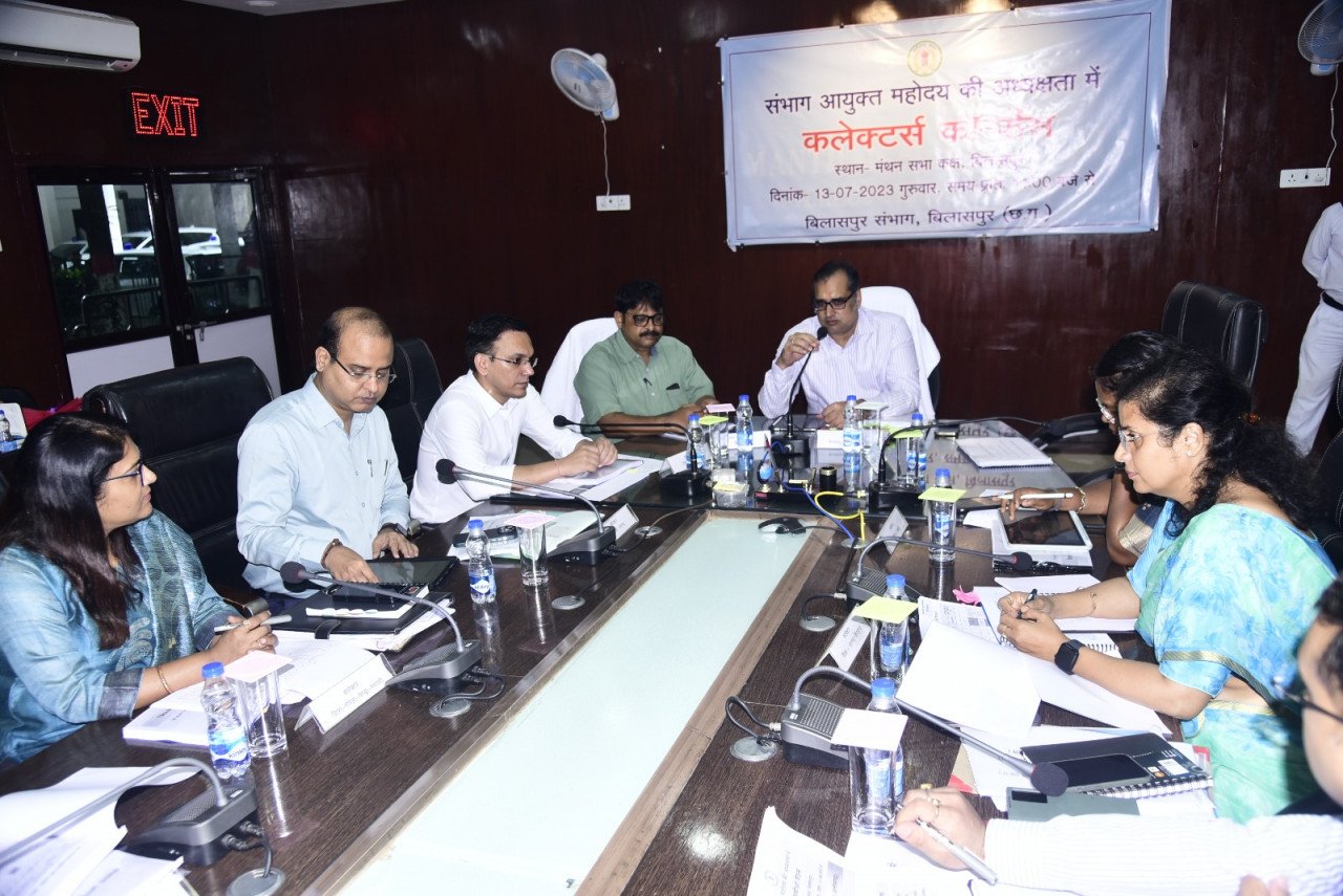 संभागायुक्त भीम सिंह ने आज मंथन सभाकक्ष में आयोजित कलेक्टर्स कांफ्रेंस में बिलासपुर संभाग के सभी जिलों के राजस्व एवं ग्रामीण विकास के कार्यों एवं फ्लैगशीप योजनाओं की प्रगति की समीक्षा की। उन्होंने न्याय योजनाओं सहित हितग्राहीमूलक योजनाओं के सभी पात्र हितग्राहियों को लाभ दिलाने को कहा है। उन्होंने सड़क एवं स्कूलों के मरम्मत के लिए भी युद्धस्तर पर तेजी लाने के निर्देश दिए हैं। बैठक में बिलासपुर संभाग के सभी कलेक्टर्स एवं जिला पंचायत के सीईओ उपस्थित थे।