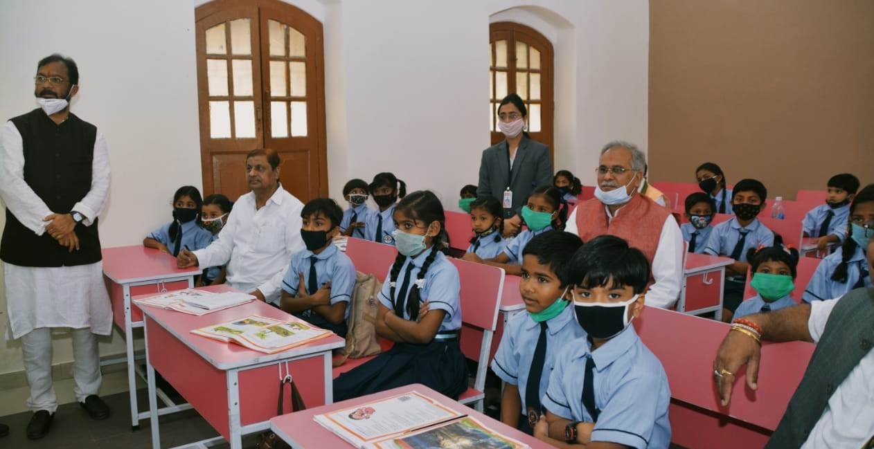 मुख्यमंत्री श्री भूपेश बघेल ने कांकेर प्रवास के दूसरे दिन आज स्वामी आत्मानंद अंग्रेजी माध्यम स्कूल योजना के अंतर्गत संचालित किए जा रहे, शासकीय नरहरदेव इंग्लिश मीडियम स्कूल का अवलोकन किया। प्रदेश की नई पीढ़ी को शिक्षा के क्षेत्र में एक नई दिशा देने के लिए छत्तीसगढ़ सरकार द्वारा चलाई जा रही इस योजना से राज्य के छात्रों की प्रतिभा निखारने और उन्हें राष्ट्रीय स्तर की सभी प्रकार की प्रतियोगिताओं के काबिल बनाने के उद्देश्य से इंग्लिश मीडियम स्कूल की शुरूआत की गई है।