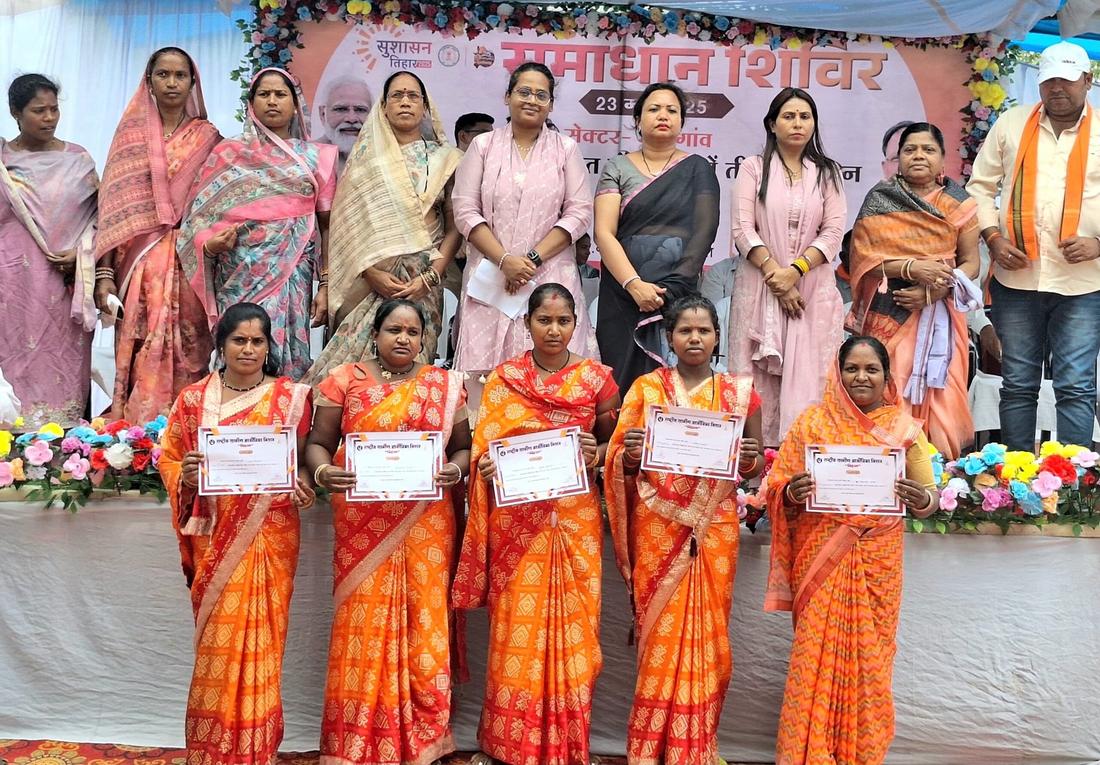 शिविर में जिला पंचायत की अध्यक्ष नम्रता सिंह ने कार्यक्रम को संबोधित करते हुए कहा कि छत्तीसगढ़ शासन मुख्यमंत्री विष्णुदेव साय के नेतृत्व में जन-जन की समस्याओं का निराकरण करने के उद्देश्य से समाधान शिविर आयोजित किया जा रहा है। समाधान शिविर के माध्यम से ग्रामीणजनों को शासन द्वारा संचालित विभागीय योजनाओं से लाभान्वित किया जा रहा है। उन्होंने आगे कहा कि व्यक्ति की व्यक्ति की जन्म से लेकर मृत्यु तक अनेक योजनाएं चलाई जा रही है। उन्होंने इस अवसर पर ग्रामीणों को प्रेरित करते हुए कहा कि जागरूकता के साथ अपनी समस्याओं को अधिकारियों के समक्ष रखें। उन्होंने आगे कहा कि महिलाओं को सशक्त और समाज के मुख्यधारा से जोड़ने के उद्देश्य से महतारी वंदन योजना संचालित की जा रही है। जिससे आज महिलाएं आत्मनिर्भरता की ओर आगे बढ़ रही है।