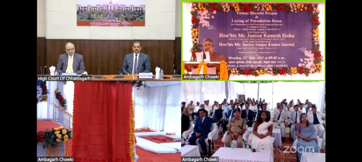 मोहला । छत्तीसगढ़ के सुदूर वनांचल क्षेत्र अंबागढ़ चौकी में न्यायिक कर्मचारियों के लिए आवासीय परिसर के निर्माण का भूमि पूजन आज मुख्य न्यायाधिपति रमेश सिन्हा द्वारा संपन्न हुआ। यह पहल न्याय व्यवस्था को अधिक सुदृढ़, प्रभावी और मानवोन्मुखी बनाने की दिशा में एक महत्वपूर्ण कदम मानी जा रही है।