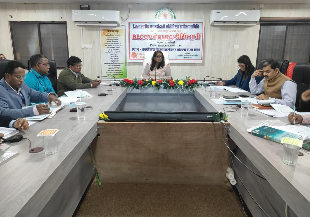 मोहला। कलेक्टर तुलिका प्रजापति की अध्यक्षता और जिले के अग्रणी बैंक बैंक ऑफ बड़ौदा के अगुवाई में जिला स्तरीय परामर्शदात्री (डीएलसीसी) एवं पुनरीक्षण समिति (डीएलआरसी) की बैठक आयोजित की गई। इस अवसर पर अपर कलेक्टर जीआर मरकाम, अग्रणी बैंक प्रबंधक सहित जिले के विभिन्न बैंकों के प्रतिनिधि उपस्थित थे।