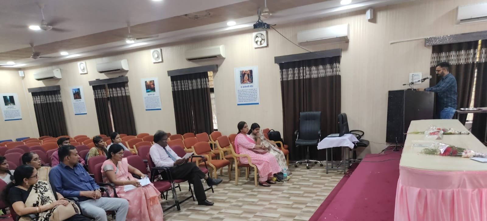 इस बैठक में शोधार्थियों ने अपने शोध प्रारूप की प्रस्तुति दी जिस पर शोध समिति के सदस्य डॉ. श्रद्धा चंद्राकर, पूर्व प्राचार्य_ शासकीय स्नातकोत्तर महाविद्यालय, बालोद डॉ. बी एन जागृत विभाग अध्यक्ष, हिंदी विभाग ,डॉक्टर आस्था दीवान_ सहायक प्राध्यापक समाधान महाविद्यालय, बेमेतरा द्वारा शोधार्थियों की शोध रूपरेखा की समीक्षा करते हुए आवश्यक सुधार के निर्देश दिए गए।