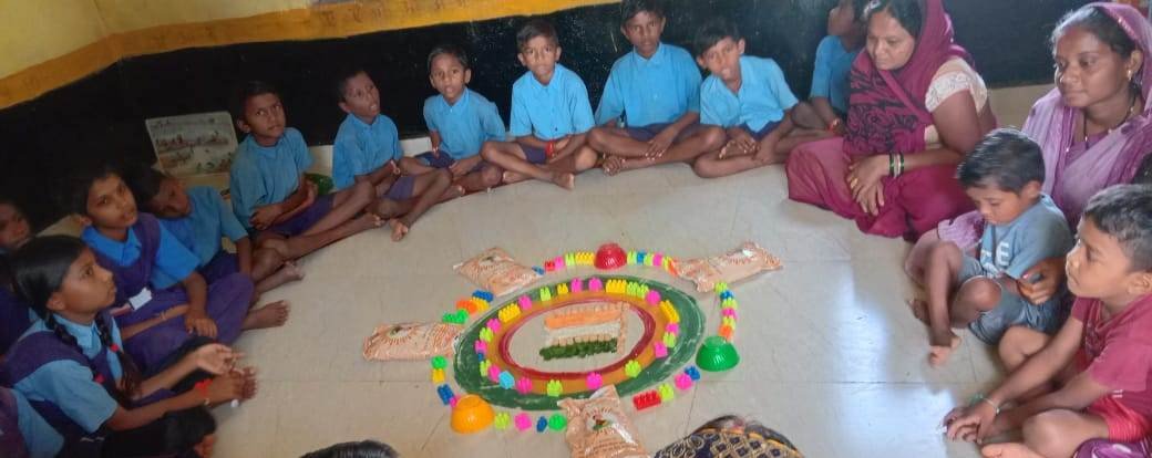 – आंगनबाड़ी केन्द्रों में तिरंगे की विविध खुबसूरत रंगोली बनाई गई