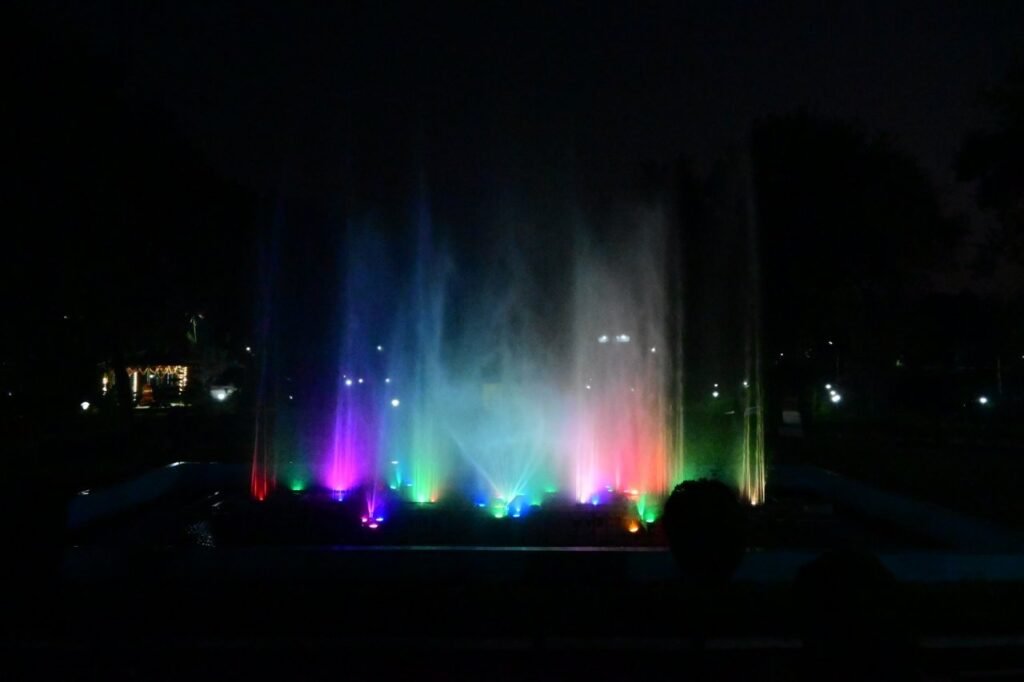 राजनांदगांव । छत्तीसगढ़ राज्य अक्षय ऊर्जा विकास अभिकरण (क्रेडा) के गौरव पथ स्थित ऊर्जा पार्क में शाम 6.30 बजे से शाम 7.30 बजे तक नागरिकों के लिए म्यूजिकल फाउंटेन प्रारंभ हो गया है। उल्लेखनीय है कि विधानसभा अध्यक्ष डॉ. रमन सिंह की पहल पर ऊर्जा पार्क में पुन: म्यूजिकल फाउंटेन प्रारंभ किया गया है। रंग-बिरंगे म्यूजिकल फाउंटेन की मोहक रोशनी एवं दृश्य को देखने बच्चे, युवा एवं बुजुर्ग ऊर्जा पार्क पहुंच रहे हैं।