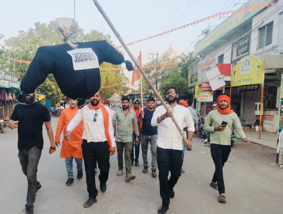 राजनांदगांव। शिवसेना छत्तीसगढ़ (शिंदे) ने कश्मीर में हुवे हिन्दुओ की निर्मम हत्या से आक्रोशित शिवसैनिको ने आतंकवाद के पुतले को फांसी पर लटकाकर नारेबाजी करते रैली निकाल कर शहर के गुरुनानक चौक में पुतला फूंका।
