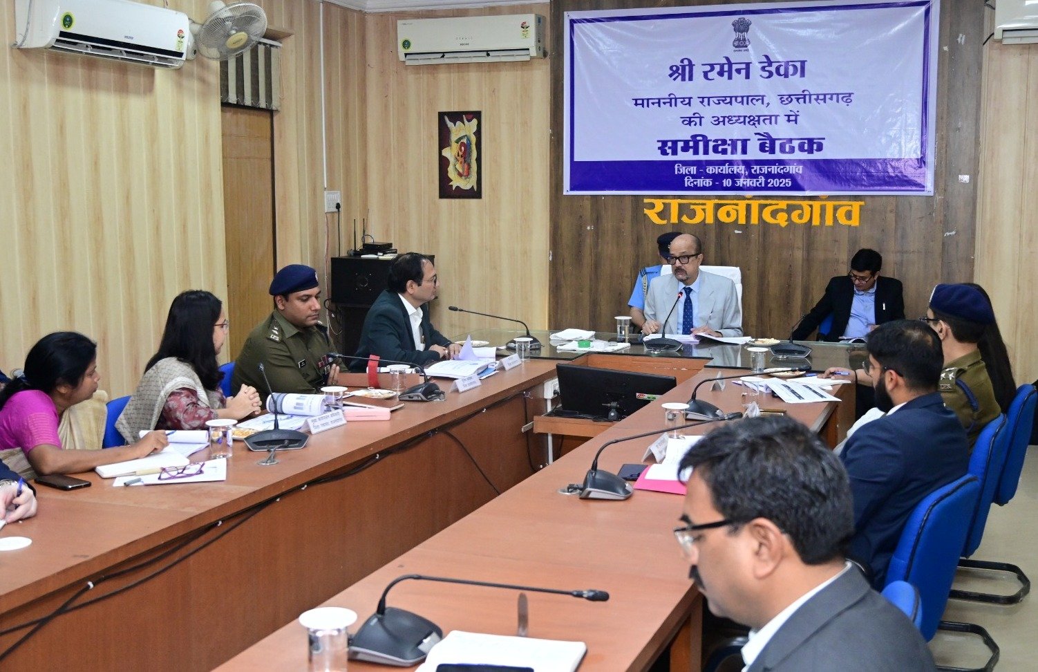 राजनांदगांव। राज्यपाल रमेन डेका की अध्यक्षता में कलेक्टोरेट सभाकक्ष में प्रशासनिक अधिकारियों की बैठक आयोजित की गई। इस अवसर पर राज्यपाल की संयुक्त सचिव हीना अनिमेष नेताम, आईजी दीपक झा, कलेक्टर संजय अग्रवाल, पुलिस अधीक्षक मोहित गर्ग, वनमंडलाधिकारी आयुष जैन, जिला पंचायत सीईओ सुरूचि सिंह उपस्थित थे।