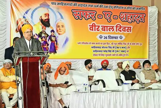 राजनांदगांव विधानसभा अध्यक्ष डॉ. रमन सिंह मंगलवार की रात गुरुद्वारा चौक पर आयोजित चार साहिबजादों की शहादत तथा धर्म की रक्षा के लिए बलिदान व शौर्य को समर्पित सफर-ए-शहादत वीर बाल दिवस कार्यक्रम में शामिल हुए। उन्होंने राजनांदगांव के गुरुद्वारे में माथा टेककर आशीर्वाद लिया और प्रदेश की खुशहाली की कामना की। डॉ. रमन ने श्री गुरु गोविंद सिंह के पुत्रों साहिबजादों की शहादत को नमन करते हुए कहा कि प्रधानमंत्री नरेन्द्र मोदी ने इनकी शहादत को सम्मान देने के लिए वीर बाल दिवस मनाने की घोषणा की है। उन्होंने कहा कि इस देश की संस्कृति, संघर्ष, अद्भुत ताकत को उस समय के शासकों ने कितना दबाया है, कितना संघर्ष हुआ इस इतिहास को देखते हैं तो दुनिया में इससे बड़ी शहादत नहीं हो सकती है। श्री गुरु गोविन्द सिंह के 4 सुपुत्र और पिता इन पांचों की शहादत दुनिया में इससे बड़ी शहादत नहीं हुई है। उन्होंने कहा कि धर्म और संस्कृति की रक्षा आज देश की संस्कृति, परंपरा जिंदा है तो हमारे गुरुओं के ऐसे अद्भुत शहादत की देन है। जिन्होंने संघर्ष किया है उनकी वजह से आज हिन्दुस्तान हजारों हजार साल के बाद भी अपने स्थान पर खड़ा एवं जीवित है। श्री गुरु गोविन्द सिंह के पुत्रों के धर्म और संस्कृति की रक्षा के लिए की गई शहादत अविस्मरणीय है। सांसद ने कुर्बानी को याद किया: सांसद संतोष पाण्डेय ने कहा कि सात और नौ वर्ष की आयु में दोनों वीरों को शहादत मिली। मुगलों के दबाव के बावजूद उन्होंने कुर्बानी चुनी। सिख समाज का इतिहास ऐसी कुर्बानी से गौरवशाली बना हुआ है। महापौर हेमा देशमुख, नीलू शर्मा, कुलबीर छाबड़ा, प्रशांत सोनी, अशोक चौधरी, समाज प्रमुख जनरैल सिंह भाटिया, यश पाल सिंह भाटिया ने भी कार्यक्रम को संबोधित किया।