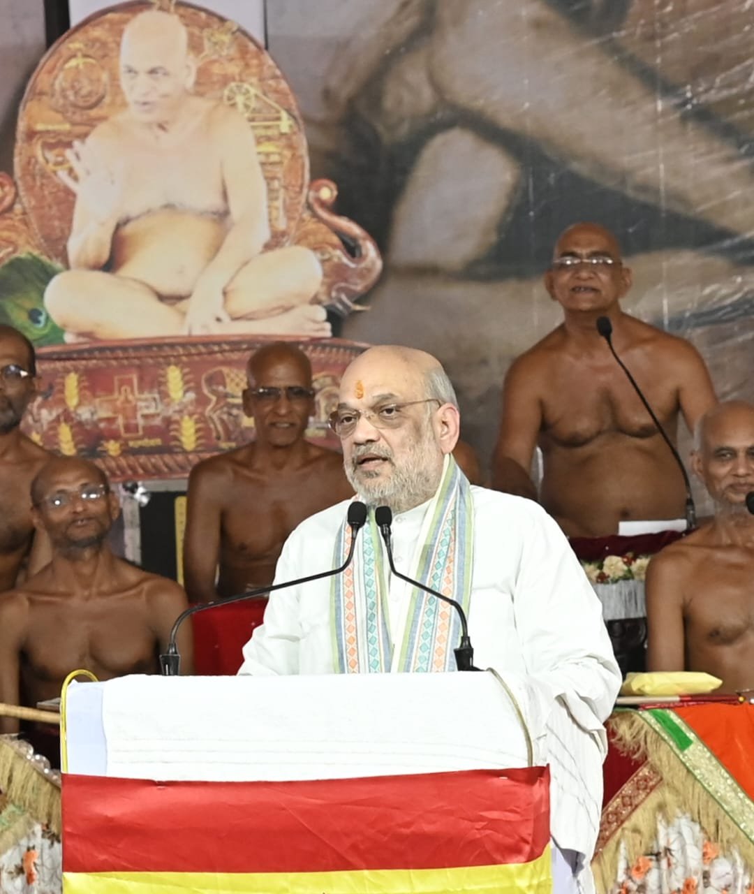 केन्द्रीय गृह और सहकारिता मंत्री भारत सरकार अमित शाह ने कहा कि दिगम्बर जैन आचार्य विद्यासागर महाराज ने तपस्या का मार्ग अपनाया और अंतिम समय में उन्होंने पंचतत्व को आत्मसात किया। उनका शरीर कृशकाय होता गया। उनके जीवन से जैन समाज को आध्यात्मिक ऊर्जा मिलती है। उन्होंने अपना जीवन राष्ट्र के लिए समर्पित कर दिया। ऐसे लोग विरले होते है। अहिंसा परमो धर्म: को समस्त विश्व में व्याख्यायित किया। उन्होंने जीवन भर जैन धर्म के सभी सिद्धातों का पालन किया। गृह मंत्री ने कहा कि प्रधानमंत्री नरेन्द्र मोदी के नेतृत्व में वसुधैव कुटुम्बकम, अहिंसा परमो धर्म की पोटली बांधकर उनके संदेशों का विश्व में प्रचार कर रहे है। उन्होंने कहा कि दिगम्बर जैन आचार्य विद्यासागर महाराज की स्मृति में भारत में 100 रूपए का सिक्का तथा उनके जीवन कंवल को वर्णित करने वाले 5 रूपए का लिफाफा का लोकार्पण किया। जिसके लिए उन्होंने प्रधानमंत्री को धन्यवाद दिया। गृह मंत्री ने कहा कि यह संत परंपरा का सम्मान है और इसकी आज समाज को बहुत जरूरत है। उनके सिद्धांत, उपदेश, विचार संदेश बनकर युगों-युगों तक अमर रहेंगे। उनका जीवन त्याग, संयम, तपस्या से परिपूर्ण रहा। देश की संत परंपरा समृद्ध रही है और भारत भूमि में संत परंपरा का निर्वहन किया जाता रहा है। यहां के संतों ने देश को एकता के सूत्र मेंं बांधा है और भक्ति के माध्यम से राष्ट्रीय चेतना की लौ जलाए रखी है। पाश्चात्य संस्कृति से दूर रहते हुए देश की संस्कृति एवं भाषा को संबल दिया है। जैन मुनि ने देश को एक करने का कार्य किया। पैदल घूम कर त्याग की पराकाष्ठा का अपने कर्मों से संदेश देने का कार्य किया है। उन्होंने अपना जीवन धर्म, संस्कृति और राष्ट्र की सेवा के लिए समर्पित किया। उन्होंने अंतिम क्षण तक खुद की परवाह करे बगैर राष्ट्र धर्म का पालन किया। उन्होंने सबके प्रति समभाव रखा तथा वितरागी रहे। हिन्दी में मूक माटी उनका महाकाव्य बना। अनेक भाषाओं में उनके अनुयाययियों ने इसे संरक्षित किया है। आचार्य विद्यासागर ने कहा है कि जिस प्रकार भोजन की थाली में विविध प्रकार के व्यंजन होते है, उसी प्रकार हमारे देश में विभिन्न प्रकार की लिपियां, बोली, भाषा, व्याकरण, सांस्कृतिक रूप से देश को समृद्ध बनाते हंै। उन्होंने धर्म, दर्शन, आध्यात्म  के साथ राष्ट्र प्रेम के प्रति जनसामान्य को जागरूक किया है। उन्होंने बताया कि शरीर क्षण भंगुर है और पंचतत्व का उदाहरण दिया। आचार्य जी नेे स्वदेशी के लिए आव्हान किया तथा गृह उद्योग, कुटीर उद्योग, गोधन, चरखा, हथकरघा के लिए जनमानस को प्रेरित किया। दिगम्बर जैन आचार्य विद्यासागर महाराज जी के कार्य, लेखन, प्रवचन, संदेश राष्ट्र की धरोहर है। उन्होंने कल्प वृक्ष की भांति ज