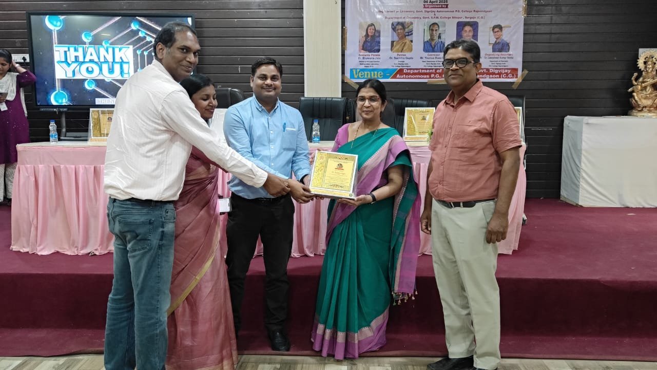 राजनांदगांव | शासकीय दिग्विजय महाविद्यालय के प्राचार्या डॉ सुचित्रा गुप्ता के कुशल नेतृत्व एवं रसायन शास्त्र के एच ओ डी प्रो. यूनुस रज़ा बेग एवं सहायक प्राध्यापक डॉ डाकेश्वर कुमार वर्मा के  मार्गदर्शन मे  दिनांक 04 मार्च 2025 को रसायनशास्त्र विभाग, शासकीय दिग्विजय महाविद्यालय राजनांदगांव एवं रसायन शासन विभाग शासकीय श्यामा प्रसाद मुख़र्जी महाविद्यालय, सीतापुर,  जिला -सरगुजा के संयुक्त तत्वाधान में एकदिवसीय वर्कशॉप एवं हैंड्स ऑन ट्रेनिंग प्रोग्राम का आयोजन किया गया , जिसका शीर्षक ” वन डे वर्कशॉप एंड हैंड्स ऑन ट्रैनिग ऑन फाइटोकेमिकल एक्सट्रैक्शन एंड नैनोमटेरियल्स सिंथेसिस फ्रॉम सलेक्टेड मेडिसिनल प्लांट्स था | इस कार्यक्रम मे मुख्य वक्ता एवं ट्रेनर के रूप मे डॉ भावना जैन, डायरेक्टर एवं सीनियर वैज्ञानिक रायपुर को आमंत्रित किया गया था.