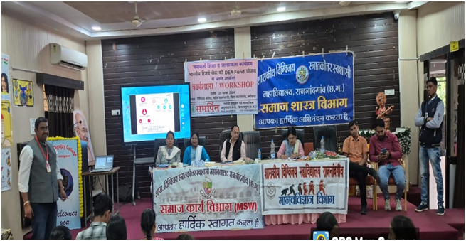 राजनांदगांव । शासकीय दिग्विजय महाविद्यालय राजनांदगांव में समाजशास्त्र ,समाज कार्य एवं मानव विज्ञान के संयुक्त तत्वाधान में एकदिवसीय कार्यशाला का आयोजन किया गया। उक्त कार्यशाला महाविद्यालय के प्राचार्य डॉ.किरण लता दामले के निर्देशन में तथा डॉ ए के मांडवी (समाजशास्त्र विभागाध्यक्ष), डॉ अंजली मोहन कोडोपी ( मानव विज्ञान विभागाध्यक्ष) एवं ललिता साहू (समाज कार्य विभागाध्यक्ष ) के मार्गदर्शन में आयोजित किया गया। उक्त कार्यशाला भारतीय रिजर्व बैंक की डी ई ए फंड योजना के अंतर्गत ” जमाकर्ता शिक्षा एवं जागरूकता कार्यक्रम ” विषय पर आयोजित किया गया। कार्यक्रम में मुनीश शर्मा ( एलडीएम आरबीआई ), नजानीन अली, हितेश मिश्रा, पी एल खैरवार, संतोषी बघेल एवं निमेष साहू आमंत्रित रहे। इस कार्यशाला के अंतर्गत विद्यार्थियों को बैंक से संबंधित डिजिटल भुगतान, बीमा ,निवेश के संबंध में विस्तार से जानकारी दी गई तथा सुरक्षित डिजिटल बैंकिंग व्यवहार के संबंध में जानकारी दी गई। साथी विद्यार्थियों को ऑनलाइन फ्रॉड एवं धोखाधड़ी से कैसे बचा जाए इसके संबंध में विस्तार से समझाया गया साथ ही ग्राहकों के अधिकारों के संबंध में जानकारी दी गई। कार्यक्रम के अंत में विद्यार्थियों द्वारा अपने शंका समाधान एवं समस्याओं के संबंध में चर्चा की गई। उक्त कार्यक्रम में महाविद्यालय के विद्यार्थी, डॉ ए के मांडवी , डॉ अंजलि मोहन कोडोपी, ललिता साहू, डॉ प्रियंका लोहिया, तारिणी साहू, चित्रांशा राठौर, शालिनी सोनी उपस्थित रहे।