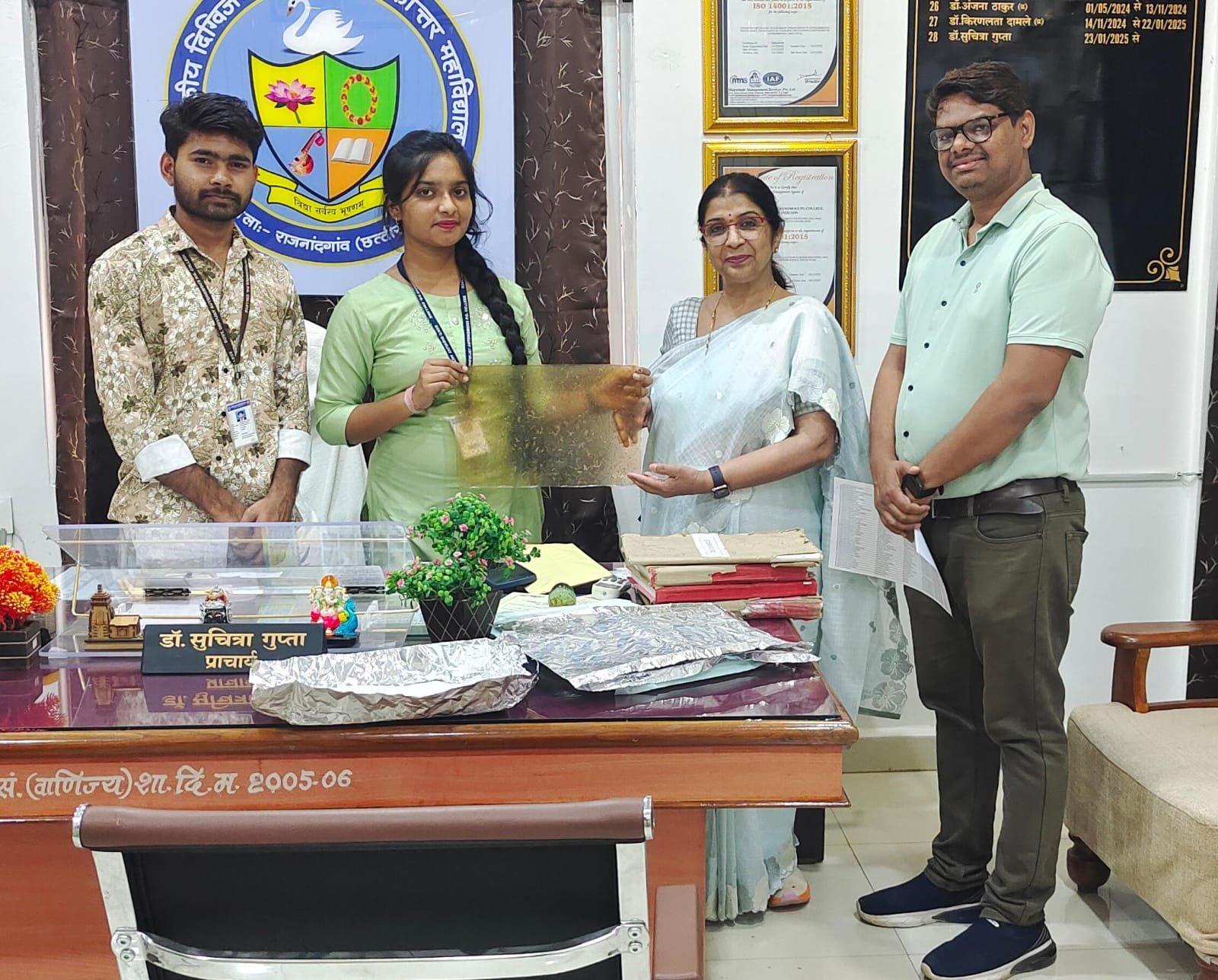 राजनांदगांव | प्रदेश के सबसे बड़े शासकीय दिग्विजय स्वशासी महाविद्यालय के सहायक प्राध्यापक डॉ. केशव राम आडिल के पर्यवेक्षण में वनस्पति शास्त्र एवं जैव प्रोधोगिकी विभाग के एम्.एस.सी. के विधायार्थियो द्वारा पौधों से प्राप्त पदार्थ से एक बायोडिग्रेडेबल प्लास्टिक का निर्माण किया गया है | इस बायोडिग्रेडेबल प्लास्टिक को डॉ. आडिल एवं उनके रिसर्च समूह ने शैवाल से प्राप्त होने वाले पॉलीसैकेराइड एवं सब्जिओ से निर्मित होने वाले उपोत्पाद को मिला कर बनाया है | इस बायो प्लास्टिक में एंटीमाइक्रोबियल एवं एंटीऑक्सीडेंट गुण है जो कि हानिकारक सूक्ष्म जीवो को वृधि करने से रोकेगा |