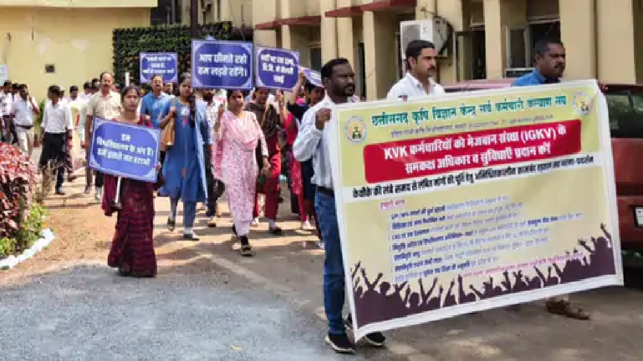 राजनांदगांव/ उपरवाह , छत्तीसगढ़ राज्य में इंदिरा गांधी कृषि विश्वविद्यालय के अधीन संचालित कृषि विज्ञान केंद्रों के अधिकारी/कर्मचारी अपनी वेतन विसंगति, अपूर्ण वेतन भुगतान एवं वैधानिक सेवा-लाभों की बहाली की मांग को लेकर जारी अनिश्चितकालीन कामबंद हड़ताल सह धरना-प्रदर्शन के जारी है। संघ द्वारा 16 से 20 फरवरी तक आयोजित पांच दिवसीय कामबंद हड़ताल के दौरान विश्वविद्यालय प्रशासन से स्पष्ट, लिखित व समयबद्ध समाधान की अपेक्षा की गई थी।