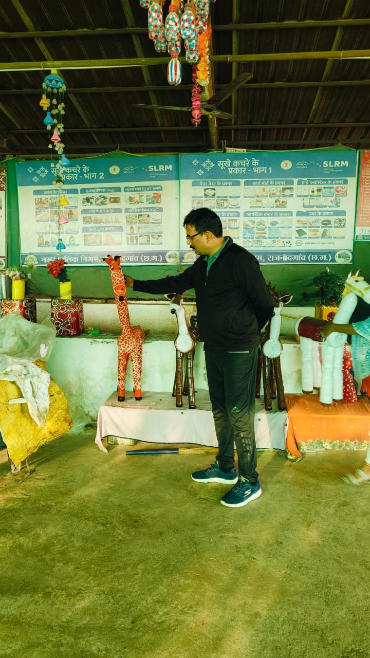 पेण्ड्री एसएलआरएम देख कबाड से जुगाड में प्लास्टिक की बनी कलाकृतियों की सराहना की