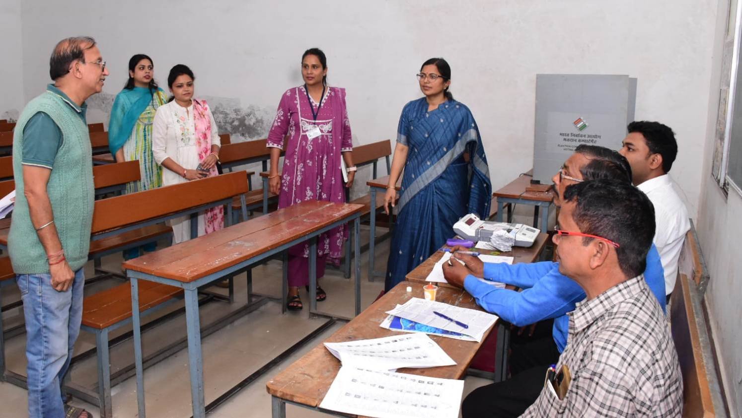 राजनांदगांव। जिले में नगरीय निकाय एवं त्रिस्तरीय पंचायत आम निर्वाचन 2024-25 के संचालन एवं प्रेक्षण कार्य हेतु नियुक्त प्रेक्षक आईएएस जयश्री जैन ने आज राजनांदगांव शहर के शासकीय शिवनाथ विज्ञान महाविद्यालय, शासकीय दिग्विजय महाविद्यालय में स्थित विभिन्न मतदान केन्द्रों में जाकर मतदान प्रक्रिया का जायजा लिया। उन्होंने डोंगरगांव के मतदान केन्द्र और स्ट्रांग रूम का निरीक्षण किया। उन्होंने मतदान केन्द्रों के पीठासीन अधिकारियों से मतदान प्रगति और मॉकपोल के दौरान प्रतिनिधियों की उपस्थिति के संबंध में जानकारी ली। उन्होंने पीठासीन अधिकारियों को छत्तीसगढ़ राज्य निर्वाचन आयोग द्वारा दिए गए सभी आवश्यक दिशा-निर्देशों का पालन सुनिश्चित करने कहा। उन्होंने त्रिस्तरीय पंचायत निर्वाचन के लिए जनपद पंचायत डोंगरगांव में निर्वाचक नामावली का निरीक्षण किया। इसके साथ त्रिस्तरीय पंचायत निर्वाचन के लिए बनाए गए  मतदान केन्द्र आरी का भी निरीक्षण किया।