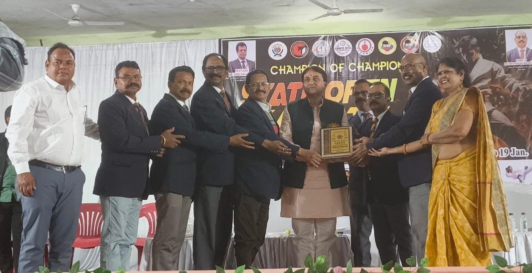राजनांदगांव | कमला देवी कॉलेज के स्पोर्ट्स हॉल में द्वितीय चौंपियन ऑफ चौंपियंस ओपन राज्य स्तरीय कराते प्रतियोगिता का आयोजन जिला कराते संघ के सचिव छत्तीसगढ़ कराते डू एसोसिएशन के उपाध्यक्ष एवं राजनांदगांव एकेडमी ऑफ मार्शल आर्ट के मुख्य प्रशिक्षक शिहान मुरली सिंह भारद्वाज के नेतृत्व में कराया गया, जिसमें छत्तीसगढ़ प्रदेश के लगभग 300 खिलाड़ियों ने भाग लिया। इस प्रतियोगिता में राजनांदगांव की टीम कुल 50 स्वर्ण पदक प्राप्त कर ओवर ऑल चौंपियन बनी। उक्त टूर्नामेंट का संचालन सेंशाई अंबर सिंह भारद्वाज अंतर्राष्ट्रीय कराते खिलाड़ी एवं गुण्डाधुर अवॉर्डी के पर्यवेक्षण में आयोजित हुआ। यह प्रतियोगिता अलग अलग वर्गाे में अयोजित की गई, जिसमे सब जूनियर कैडेट, जूनियर एवं सीनियर वर्ग के प्रतिभागी शामिल हुए। पदक विजेता खिलाड़ियों के नाम वर्ग वार निम्नानुसार है – सब जूनियर बालिका वर्ग – सिमरन तिवारी ( स्वर्ण पदक काता, कांस्य पदक कुमिते ) भेरूषि साहू ( रजत पदक काता , रजत पदक कुमिते) , अवनी खंडेलवाल (स्वर्ण पदक काता, स्वर्ण पदक कुमिते) ,पारुल साहू (स्वर्ण पदक काता, रजत पदक कुमिते) अहाना प्रसाद (रजत पदक काता, रजत पदक कुमिते) पलक साहू ( कांस्य पदक काता, कांस्य पदक कुमिते) , दीतीशा साहू ( स्वर्ण पदक कुमिते) , नितिशा निप्पणे (कांस्य पदक काता, कांस्य पदक कुमिते) पावनी साहू (कांस्य पदक कुमिते) , दिनशा खोबरागड़े (कांस्य पदक कुमिते) , मान्या साहू ( कांस्य पदक कुमिते) , गीत मोटवानी (रजत पदक काता रजत पदक कुमिते) , ख्याति साहू ( कांस्य पदक कुमिते), लिमिशा वासनिक (कांस्य पदक कुमिते) बालिका कैडेट वर्ग – धात्री साहू ( रजत पदक काता रजत पदक कुमिते), झलक साहू (कांस्य पदक कुमिते) ,विधि सिन्हा (रजत पदक काता) , बालिका सीनियर वर्ग – मुस्कान साहू (कांस्य पदक कुमिते) , सुधा साहू (रजत पदक काता कांस्य पदक कुमिते) , अन्नपूर्णा साहू (कांस्य पदक कुमिते) , लोकिता साहू (स्वर्ण पदक कुमिते कांस्य पदक काता) , सब जूनियर बालक वर्ग – शिवांश सोनी (स्वर्ण पदक कुमिते रजत पदक काता) , रिद्दांश चावड़ा (कांस्य पदक कुमिते ) श्रेष्ठ मिश्रा (स्वर्ण पदक कुमिते कांस्य पदक काता) , मानविक सेठिया (स्वर्ण पदक काता , कांस्य पदक कुमिते) , कविश शाह ( स्वर्ण पदक काता, कांस्य पदक कुमिते), अर्श सुखीजा ( कांस्य पदक कुमिते) , कबीर साहू (स्वर्ण पदक काता , रजत पदक कुमिते) , प्रथम तिवारी ( स्वर्ण पदक कुमिते, कांस्य पदक काता) , हिमांशु झा (स्वर्ण पदक काता रजत पदक कुमिते) , विनय साहू (कांस्य पदक काता कांस्य पदक कुमिते) , समर सोनी (रजत पदक काता रजत पदक कुमिते) , विराट साहू (स्वर्ण पदक काता, रजत पदक कुमिते) , नित्यम शर्मा ( कांस्य पदक कुमिते) , विराट निषाद ( कांस्य पदक कुमिते) कैडेट बालक वर्ग – छविकांत ( कांस्य पदक क