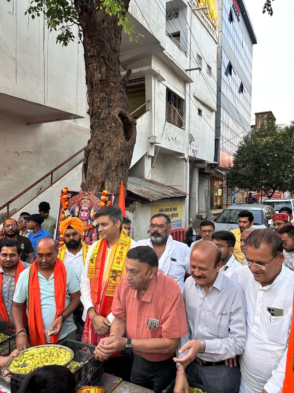 महाप्रसाद एवं शीतल ठंडा जल वितरण से *शोभायात्रा में सम्मिलित भक्तों का भव्य स्वागत प्रतिवर्ष अनुसार इस वर्ष भी बाल रतन मंच सेवा समिति द्वारा चैत्र पूर्णिमा दिनांक 12 अप्रैल शनिवार *संध्या 5:30 बजे स्थान श्याम कुटी दरबार के नीचे रामाधीन मार्ग से किया पेड़ के नीचे हनुमान जी का भव्य दरबार सजाया गया हनुमान जी का पूजन अर्चन करते हुए बाल रत्न मंच सेवा समिति के शोभा यात्रा स्वागत समारोह में राजनांदगांव के पूर्व सांसद अभिषेक सिंह, राजनंदगांव भाजपा के पूर्व जिला अध्यक्ष संतोष अग्रवाल, केंद्रीय सहकारी बैंक के अध्यक्ष सचिन बघेल , भाजपा नेता कमल गांधी , एमआईसी के मेंबर शैंकी बग्गा सम्मिलित होकर हनुमान भक्तों का भव्य पुष्प वर्षा एवं अंगूर फल का वितरण करते हुए स्वागत किया बाल रत्न मंच सेवा समिति की ओर से अध्यक्ष राहुल अग्रवाल एवं सचिव सौरभ खंडेलवाल द्वारा हनुमान जन्मोत्सव अयोजन समिति के प्रमुख झमन देवांगन , अशोक चौधरी , प्रशांत सोनी ,अरुण गुप्ता , विष्णु साव जी का स्वागत राम नाम दुपट्टा पहनाकर स्वागत किया गया संस्था के संरक्षक संरक्षक विजय अग्रवाल , राजकुमार अग्रवाल ,हरीश अग्रवाल नीतीश अग्रवाल , राजेश अग्रवाल , संस्था के अध्यक्ष राहुल अग्रवाल कोषाध्यक्ष मयंक कृष्णा शर्मा, सचिव सौरभ खंडेलवाल प्रचार प्रमुख रितेश यादव, महेश शर्मा , रवि शर्मा ,प्रशांत अग्रवाल, पीयूष शर्मा , चैतन्य अग्रवाल, करण अग्रवाल,,अरविंद गुप्ता, रोहित शर्मा अभिनव अग्रवाल, हर्ष अग्रवाल, लोकेश अग्रवाल, राहुल सोनू अग्रवाल, कश्यप शर्मा हिमांशु शर्मा ,एवं नन्हे छोटे-छोटे बच्चे अर्णव अग्रवाल सार्थक शर्मा वैदिक शर्मा, वंदित शर्मा, गोपाल अग्रवाल युग खंडेलवाल, संचित खंडेलवाल, श्रेष्ठ अग्रवाल , वैदिक गुप्ता , सभी ने मिलकर उत्साह उमंग भक्ति के साथ हनुमान जन्मोत्सव यात्रा का स्वागत किया ।