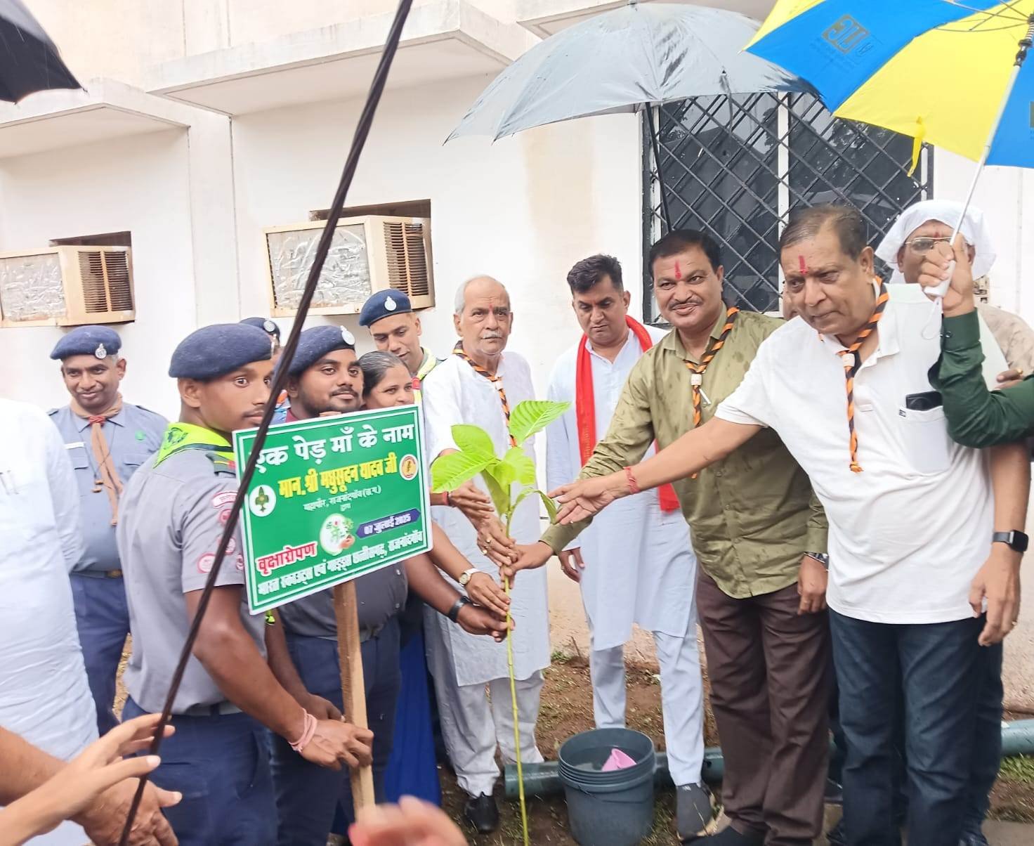 राजनांदगांव । भारत स्काउट्स एवं गाइड्स छत्तीसगढ़ द्वारा एक पेड़ माँ के नाम अभियान अंतर्गत महंत बलरामदास स्टेट स्कूल परिसर राजनांदगांव में पौधरोपण एवं राज्य पुरस्कार प्रमाण पत्र वितरण कार्यक्रम का आयोजन किया गया। कार्यक्रम में महापौर मधुसूदन यादव, अध्यक्ष छत्तीसगढ़ राज्य पर्यटन मंडल नीलू शर्मा सहित अन्य जनप्रतिनिधयों द्वारा एक पेड़ माँ के नाम अभियान के तहत पौधरोपण किया गया। कार्यक्रम में वर्ष 2023 में 83 एवं वर्ष 2024 में 33 कुल 116 सफल स्काउट गाइड रोवर रेंजर को राज्य पुरस्कार प्रमाण पत्र प्रदान किया गया।