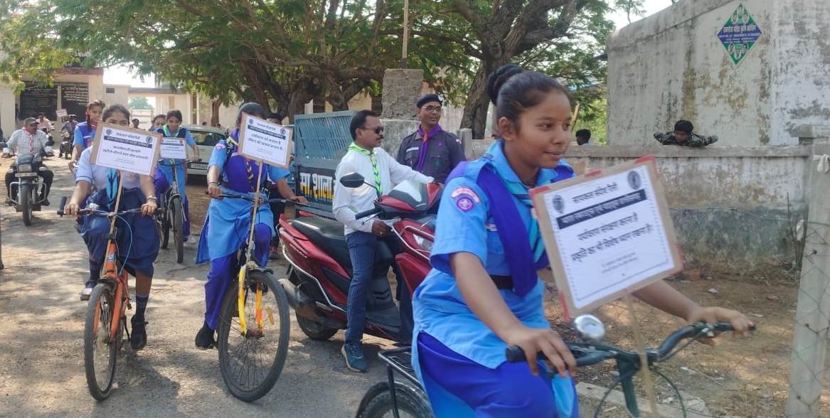 राजनांदगांव। भारत स्काउट्स एवं गाइड्स के 75वीं हीरक जयंती के अवसर पर शासकीय कन्या उच्चतर माध्यमिक विद्यालय डोंगरगढ़ से पर्यावरण एवं जल संरक्षण का संदेश देने के लिए साइकिल रैली निकाली गई।