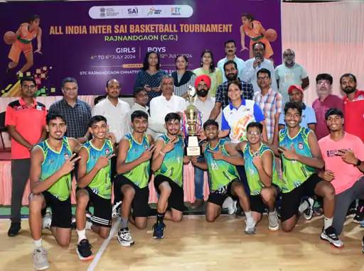 राजनांदगांव भारतीय खेल प्राधिकरण प्रशिक्षण केन्द्र राजनांदगांव द्वारा आयोजित अखिल भारतीय अंतर साई और अंतर खेलो इंडिया एकेडमी बास्केटबॉल प्रतियोगिता में युगांतर खेलो इंडिया बास्केटबॉल एकेडमी राजनांदगांव की बालक बास्केटबॉल टीम ने अखिल भारतीय अंतर साई बास्केटबॉल प्रतियोगिता में स्वर्ण पदक प्राप्त किया। फाइनल में साई ट्रेनिंग सेंटर वाराणसी को 81-61 अंकों से परास्त किया। पिछली विजेता साई ट्रेनिंग सेंटर जबलपुर की टीम ने कांस्य पदक जीता। इस प्रतियोगिता का समापन समारोह पूर्व सांसद मधुसूदन यादव के मुख्य आतिथ्य, समाजसेवी शैंकी बग्गा की अध्यक्षता एवं अंतरराष्ट्रीय हॉकी खिलाड़ी मृणाल चौबे एवं बास्केटबॉल खिलाडी लुमेंद्र साहू के विशिष्ट आतिथ्य में सम्पन्न हुआ। मृणाल चौबे ने अपने उद्बोधन में कहा कि साई ने एवं कालवा राजेश्वर ने राजनांदगांव में खेल को बढ़ावा देने के लिए भरसक प्रयास किया और राजनांदगांव के बास्केटबॉल को अंतरराष्ट्रीय स्तर पर स्थापित किया। इसी का नतीजा है कि विगत 2007 के पश्चात राजनांदगांव में बास्केटबॉल की लगातार राष्ट्रीय स्तर की प्रतियोगिता हो रही है। कार्यक्रम की अध्यक्षता कर रहे समाज सेवी शैंकी बग्गा ने बताया राजनांदगांव में बास्केटबॉल की राष्ट्रीय स्तर की प्रतियोगिता होना गर्व का विषय है। राजनांदगांव एक भारत श्रेष्ठ भारत का मिशन पुरा करने का माध्यम बन रहा है। खेल को बढ़ावा देने का प्रयास: मधुसूदन अपने उद्बोधन में कार्यक्रम के मुख्य अतिथि मधुसूदन यादव ने बताया कि खेल और खिलाड़ियों के सर्वांगीण विकास के लिए कृतसंकल्पित हूं। राजनांदगांव और शहर के विकास के लिए में हर संभव प्रयास करूंगा। राज्य और केंद्रीय सरकार भी खेल को बढ़ावा देने का प्रयास कर रही है। साई ने मृणाल चौबे, रेणुका यादव लुमेन्दर् साहू, श्रवण कुमार सहित कई अंतरराष्ट्रीय खिलाड़ी दिए हैं। राजनांदगांव में राजेश्वर राव की पदस्थापना के पश्चात बास्केटबॉल का स्तर बढ़ाने का प्रयास किया। इसका नतीजा भी दिख रहा है।