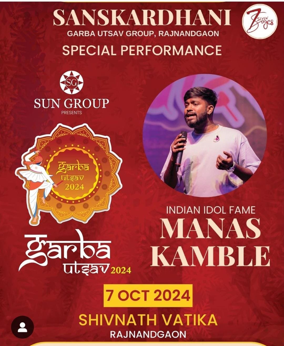 राजनांदगांव। संस्कारधानी गरबा उत्सव 2024 के अंतर्गत आज 7 अक्टूबर को शिवनाथ वाटिका में इंडियन आइडल फेम मानस काम्बले की शानदार लाइव प्रस्तुति होगी। यह आयोजन संस्कारधानी गरबा उत्सव समिति द्वारा आयोजित किया गया है, जिसमें मानस काम्बले अपने बेहतरीन गायन से उपस्थित लोगों को मंत्रमुग्ध करेंगे।