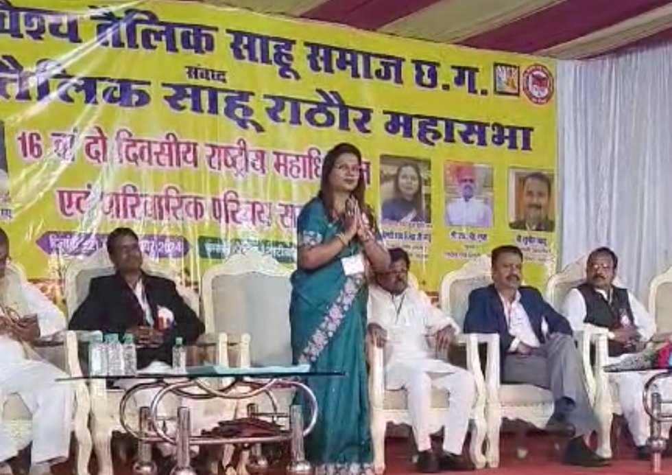 राजनांदगांव / संस्कार धानी नगरी की महिलाएं हर क्षेत्र में झंडा गाड़ रही है। यहां की एक सम्मानित साहू परिवार की बहु रेखा साहू राजधानी रायपुर में अखिल भारतीय स्तर का 17 वां तैलिक साहू राठौर महासभा का भव्य आयोजन कर संस्कार धानी की नारी शक्ति का परचम लहराया है । देश भर के साहू समाज के हजारों लोगों की उपस्थिति में राजधानी के भंसाली मैरिज पैलेस में आयोजित इस महाधिवेशन में रेखा साहू की समाज संबंधी कार्य की भूरि- भूरि प्रशंसा व सराहना की गई और समाज के वरिष्ठ लोगों द्वारा उनका भावभीना सम्मान किया गया।