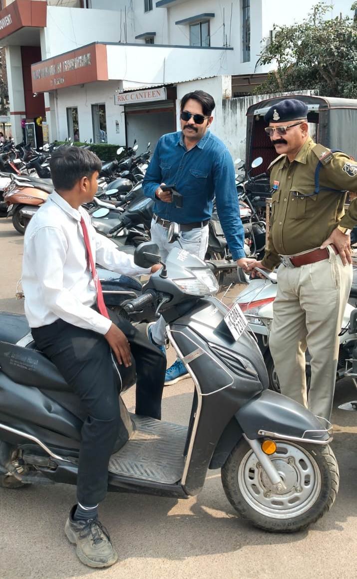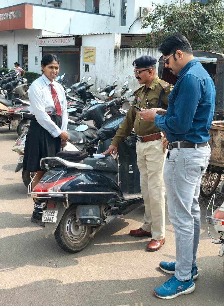 राजनांदगांव । परिवहन विभाग एवं यातायात पुलिस द्वारा चलाए जा रहे सड़क सुरक्षा माह अंतर्गत रॉयल किड्स कॉन्वेंट स्कूल के सामने जांच एवं जागरूकता अभियान चलाया गया। अभियान के दौरान यातायात नियमों का उल्लंघन करने वाले छात्रों को उनके पालकों से फोन पर चर्चा कर सड़क सुरक्षा के प्रति समझाइश दी गई। साथ ही छात्रों को हेलमेट पहनकर वाहन चलाने एवं ड्राइविंग लाइसेंस बनवाकर ही वाहन चलाने के लिए कहा।