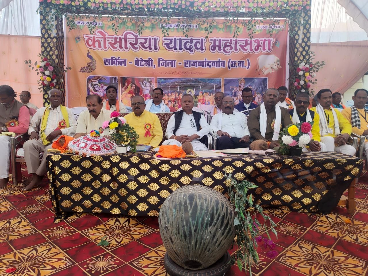 सर्किल कोसरिया यादव समाज के द्वारा विशाल शोभा यात्रा से ग्राम भ्रमण करते हुए कार्य क्रम स्थल पहुँच कर भगवान् श्री राधा कृष्ण मंदीर में विशेष पूजा अर्चना के साथ मंचीय कार्य क्रम प्रारम्भ हुआ। आमंत्रित अतिथियों का समाज द्वारा विशेष सम्मान किया गया। कार्य क्रम के मुख्य अतिथि मा.दलेश्वर् साहू जी को सामाजिक रूप से खुमरी व लाठी भेंट कर भी विशेष सम्मान किया गया गया। मुख्य अतिथि ने अपने सम्बोधन में कहा कि समाज हम सबसे बड़ा है और इसके उत्थान में हर ब्यक्ति को तन,मन,धन और जन से योगदान देना ही चाहिए क्योकि समाज हमारा संरक्षक होता है,समाज के बगैर हमारा कोई अस्तित्व नहीं है। ग्राम बाकल् में एक बड़ा सभा कक्ष यादव समाज के लिए बनाये जाने की घोषणा भी किया है। कार्य क्रम की अध्यक्ष ता पर विराजमान पद्मश्री फुलबाशन यादव ने समाज में महिलाओं की भागीदारी को अनिवार्य बताते हुए नारी शक्ति को जागृत होने पर जोर दिया। महिलाओं को छोटे छोटे कुटीर उद्योग के माध्यम से अपने आर्थिक स्तर को बड़ाने पर विशेष जोर दिया है। जिला अध्यक्ष कंसु राम यादव ने कहा कि इस वर्ष यादव समाज के लोगों में राजनीति के क्षेत्र में विशेष जागृति आई है और ऐतिहासिक रूप से चुनाव मेंजीत हासिल कर पंच,सरपंच,जनपद,जिला में यादव समाज का गौरव बढ़ाये हैं,जिला कोसरिया यादव समाज इन सबका विशेष सम्मान करेगा ,राजनैतिक पकड़ से ही समाज के उत्थान में सहायता मिलता है। जिला के संरक्षक के. आर. यादव ने समाज और परिवार के समुचित विकास में शिक्षा और सार्थक संस्कार को अपनाने की बात कही,समाज में महिलाओं के सम्मान में बदले गए नियमावली के पालन करने पर जोर दिया। सभा को महेंद्र यादव, राधे यादव,शीलू यादव,महेश यादव अलख राम यादव आदि ने भी सम्बोधित करते हुए समाज के संगठन कोऔर अधिक मजबूत करने पर जोर दिये हैं। सर्किल पेटेश्री का कार्य क्रम पूरे जिला के लिए अनुकरणीय योगदान रहा है और आगे भी रहेगा। अन्य सर्किल पदाधिकारी गणों में सर्व केदार यादव,लखन यादव,दुख हरण यादव,पुनीत राम यादव,बिसम्भर् यादव,मुलचंद् यादव,सुदर्शन यादव,देवागा यादव,खिलावन यादव,चिंता राम यादव,गोविंद यादव आदि भी उपस्थिति देकर यादवी एकता का परिचय दिये हैं।