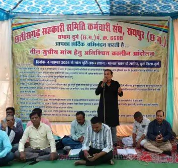सहकारी समिति कर्मचारी अपनी मांगों पर चरणबद्ध आंदोलन कर रहे हैं। जिले में 21 और 22 अक्टूबर को धरना प्रदर्शन किया और ज्ञापन सौंपा गया था। लेकिन शासन-प्रशासन से उनकी मांगों पर आश्वासन नहीं मिलने से उन्होंने बेमियादी हड़ताल शुरू कर दी। तीन सूत्रीय मांगों में मध्य प्रदेश सरकार की तर्ज पर प्रदेश की 2058 समितियों के कर्मचारियों को वेतनमान, हर साल हर समिति को 3-3 लाख रुपए प्रबंधकीय अनुदान राशि देने, पुनरीक्षित वेतनमान लागू करने, विगत खरीदी में सूखत मान्य कर आगामी सालों में सूखत प्रावधान करने, खरीदी अनुबंधन में बदलाव, प्रासंगिक, सुरक्षा व्यय कमीशन बढ़ाने की मांग शामिल है।