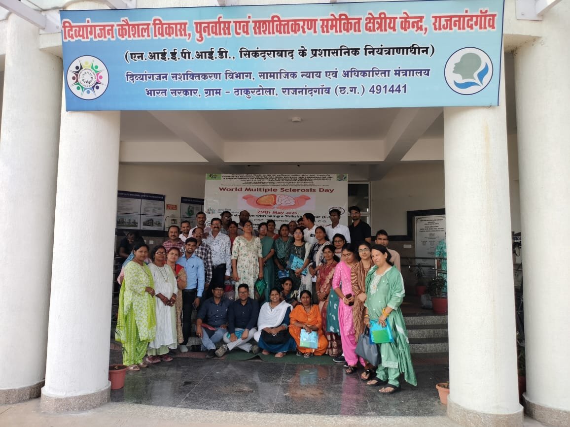 राजनांदगांव। मिशन संचालक समग्र शिक्षा विभाग राज्य परियोजना कार्यालय रायपुर के मार्गदर्शन एवं एनआईईपीआईडी सिकंदराबाद अंतर्गत संचालित सीआरसी ठाकुरटोला के सहयोग से सीआरसी ऑडिटोरियम मल्टीपेल स्कॉलोरोसिस दिवस के अवसर पर बिलासपुर संभाग से 53, सरगुजा संभाग से 45 बीआरपी समावेशी शिक्षा व विशेष शिक्षक हेतु नवाचारी गतिविधियों पर प्रशिक्षण कार्यक्रम का आयोजन किया गया। कार्यक्रम का शुभारंभ निदेशक डॉ. स्मिता महोबिया, एपीसी श्री केपी विश्वकर्मा द्वारा किया गया।