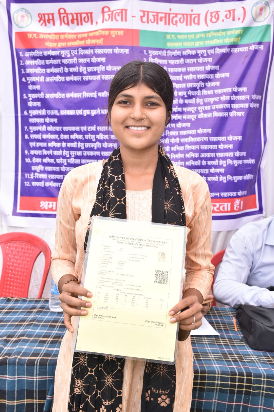 राजनांदगांव। शासन की मुख्यमंत्री नोनी सशक्तिकरण सहायता योजना श्रमिकों के लिए बहुत उपयोगी साबित हो रही है। इसकी एक बानगी दिखाई दी, राजनांदगांव विकासखंड के नगर पंचायत घुमका में आयोजित समाधान शिविर में। जहां ग्राम बरबसपुर की हिमांशी वर्मा को मुख्यमंत्री नोनी सशक्तिकरण सहायता योजना के तहत 20 हजार रूपए की राशि प्राप्त होने पर उनके चेहरे पर खुशी छलक रही थी।