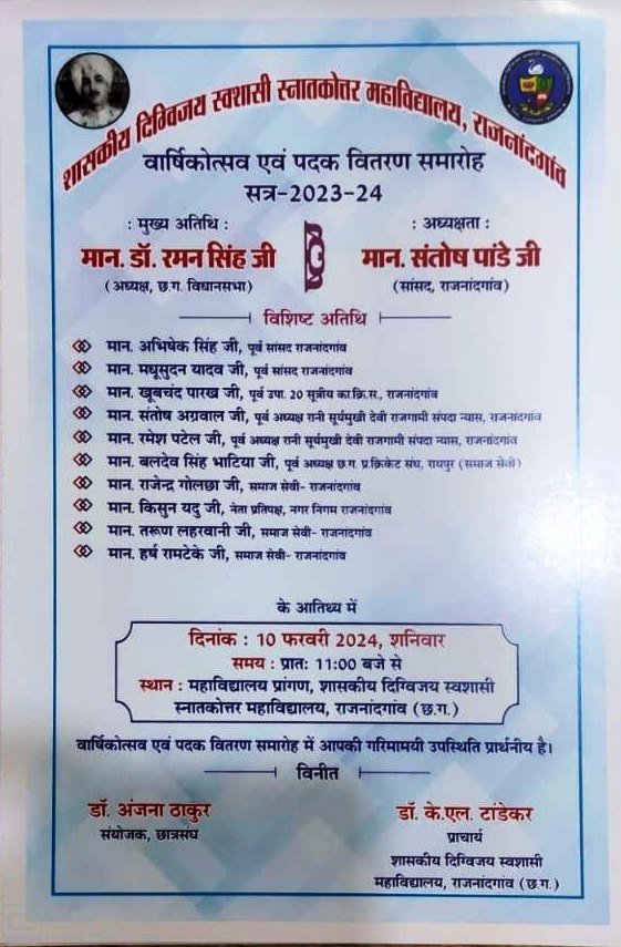 जिला महासचिव टीकेश देशलहरे एवं मेहुल कुमार ने कहा कि दिग्विजय महाविद्यालय के वार्ड के पार्षद को भी वार्षिकोत्सव समारोह के कार्ड मे नाम नही है। यहाँ बीजेपी कि ओच्छी राजनीति को दर्शता है ।