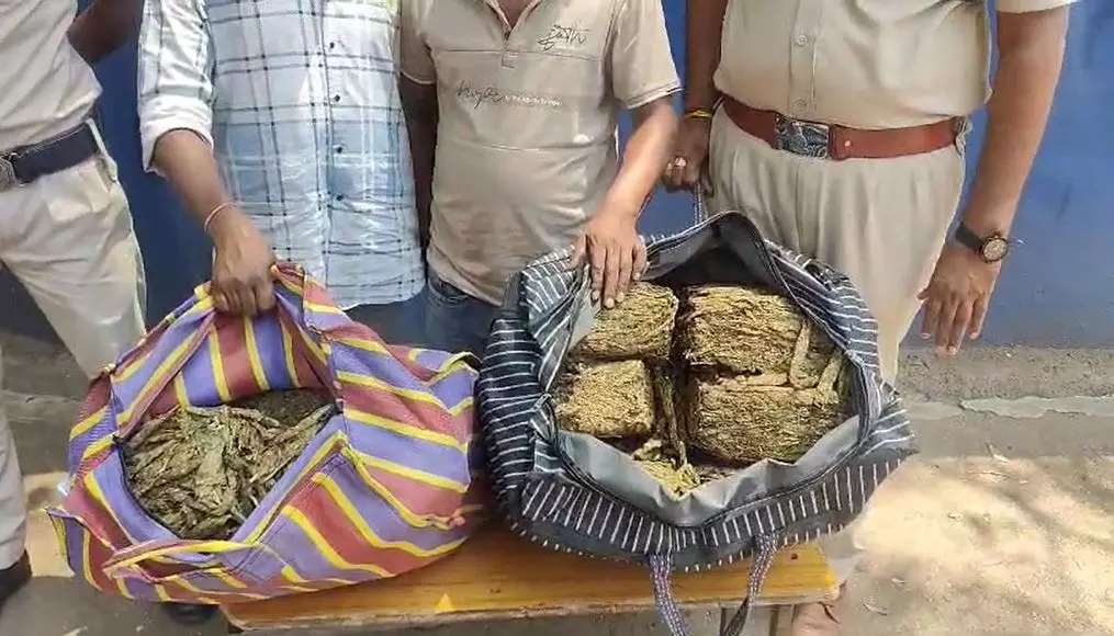 राजनादगांव। राजनांदगांव पुलिस को नशे के तस्करों के खिलाफ अभियान में बड़ी कामयाबी हाथ लगी है. शनिवार को कोतवाली पुलिस ने शहर की बायपास पर रोड पर दो अंतरराज्यीय तस्करों को भारी मात्रा में गांजे के साथ गिरफ्तार किया है. पकड़े गए दोनों तस्करों में से एक उडीसा और एक गुजरात का रहने वाला है. पुलिस ने दोनों को उस वक्त धर दबोचा जब दोनों रोड के पास खड़े होकर बस का इंतज़ार कर रहे थे. बता दें कि पुलिस ने दोनों आरोपियों के कब्जे से 40 किलो 700 ग्राम गांजा बरामद किया है, जिसकी कीमत 3 लाक 20 हजार रूपये बताई जा रही है. पुलिस ने बताया कि लोकसभा चुनाव के मददेनजर चुनाव प्रक्रिया निर्विघ्न, शांतिपूर्ण सम्पन्न कराने के उद्देश्य से असामाजिक तत्वों एवं अवैध गांजा, शराब एवं नशीले पदार्थो के बिक्री में संलिप्त लोगों के विरूद्व चलाये जा रहे अभियान के तहत शुक्रवार को मुखबीर से सूचना प्राप्त हुई, कि राजनांदगांव बायपास के पास मेन रोड़ पर दो व्यक्ति गांजा रखकर बस का इंतजार कर रहे है. जिसके बाद पुलिस मौके पर पहुंची और घेराबंदी कर दोनों को दबोचा. पुलिस जवानों ने जब दोनों के पास रखे थैलों की तलाशी ली तो उनमें भारी मात्रा में गांजा बरामद हुआ. जानकारी के मुताबिक पुलिस के हत्थे चढ़े इन आरोपियों में से एक का नाम रमेश सेठी पिता नटवर सेठी है जो गंजाम ओडिशा और दूसरा रूचिता कुमार गोड़ सूरत, गुजरात का रहने वाला है. पुलिस ने दोनों आरोपियों को गिरफ्तार कर न्यायिक रिमांड पर जेल भेजा दिया है.