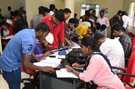 रायगढ़ जिला मुख्यालय के रोजगार कार्यालय में सोमवार को रोजगार मेले के अवसर पर जिले के हजारों बेरोजगारों की भीड़ उमडी और सभी युवाओं ने अपने-अपने आवेदनों के जरिये नौकरी के लिये आवेदन लगाए। राज्य सरकार के दिशा निर्देश पर जिला प्रशासन के अधिकारियों की देखरेख में जिले के एक दर्जन से भी उद्योगों में विभिन्न पदों के लिये सौ से अधिक पद भरे जाएंगे। इस रोजगार मेले में जिला कलेक्टर लगातार मानिटरिंग कर रहे थे और वहां स्थानीय विधायक प्रकाश नायक भी बेरोजगारों के बीच पहुंचे। साथ ही साथ उन्होंने इस पूरी प्रक्रिया का जायजा लिया।