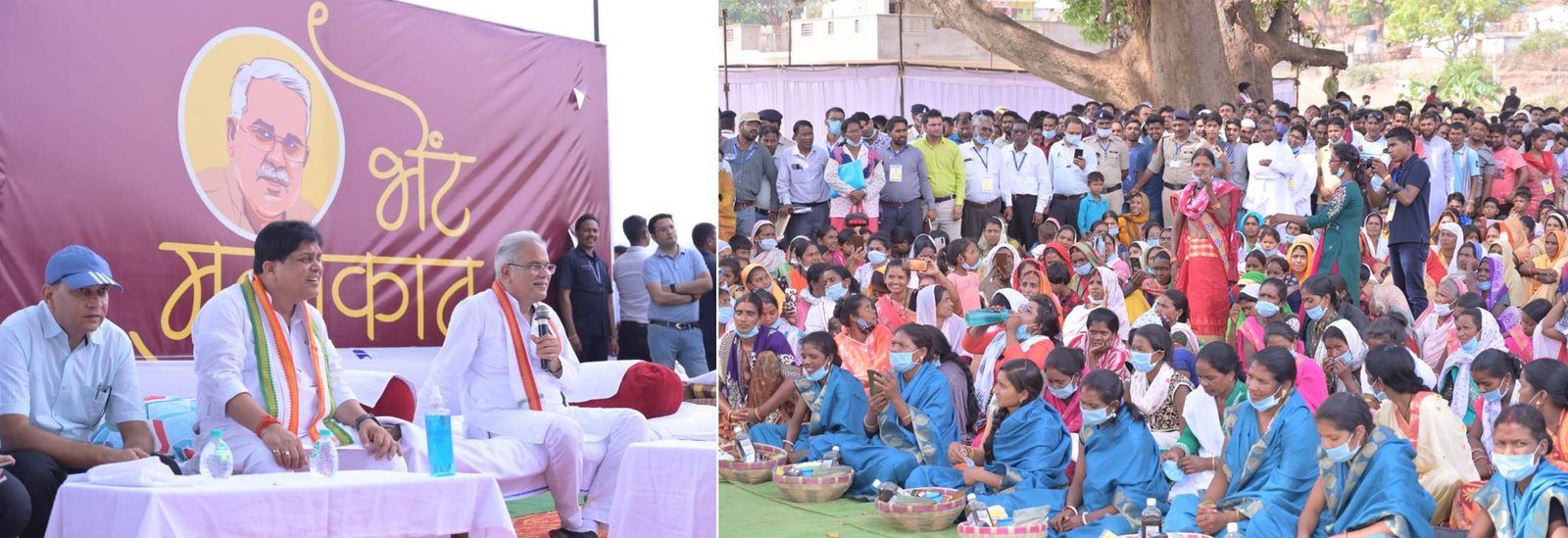 मुख्यमंत्री श्री भूपेश बघेल ने आज कुसमी में आम जनता से रूबरू चर्चा के लिए आयोजित ‘भेंट-मुलाकात‘ में कुसमी के लिए अनेक महत्वपूर्ण घोषणाएं की। नगर पंचायत कुसमी के वार्ड क्रमांक-2 में आम के पेड़ की ठंडी छांव में मुख्यमंत्री से चर्चा करने के लिए बड़ी संख्या में लोग पहुंचे थे। मुख्यमंत्री उनसे मिलने के लिए पैदल चलकर  स्थल पर पहुंचे।