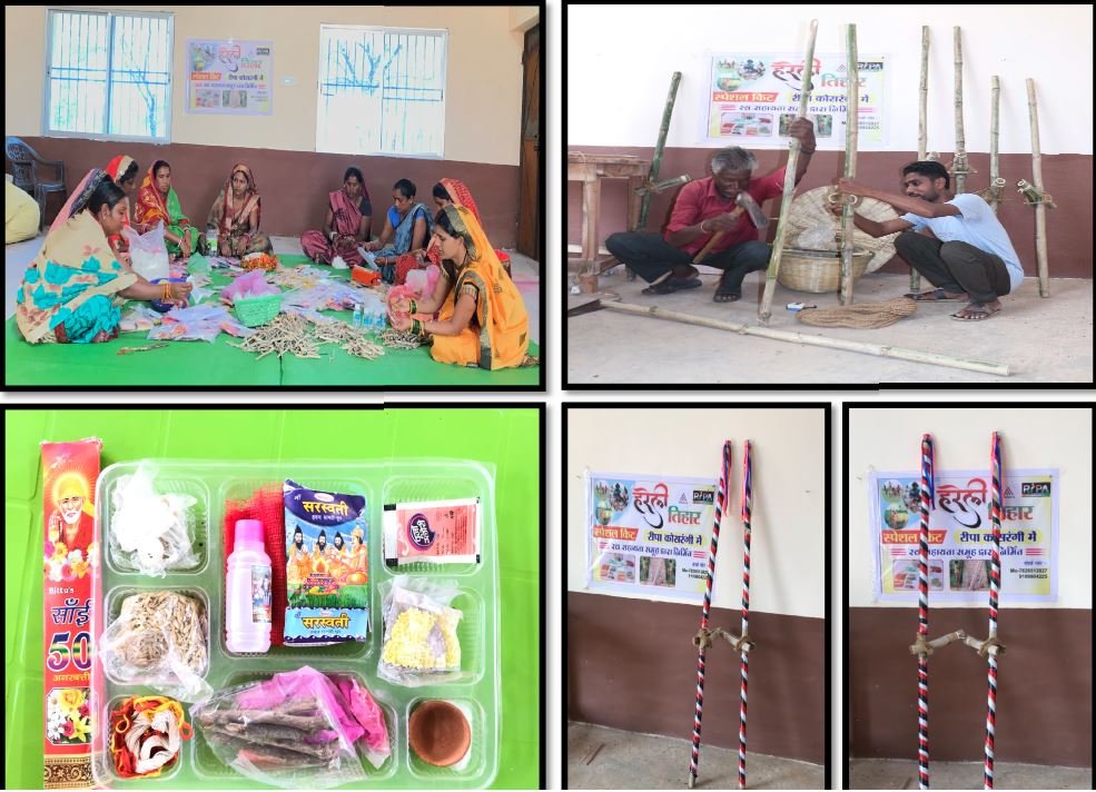 इस बार रायपुर जिले के कोसरंगी ग्राम के रीपा में हरेली तिहार को पारंपरिक रूप से मनाने के लिए एक अनूठी पहल की जा रही है। रीपा में गेड़ी एवं पूजा थाली का निर्माण किया जा रहा है। जिसे आमजन बाजार में खरीद सकेंगे और हरेली तिहार का उत्सव मना सकेंगे। इस थाली में स्व-सहायता समूह की महिलाओं एवं बंसोड़ जाति लोगों द्वारा पूजा में उपयोग होने वाले सामग्री जैसे काला तिल, हल्दी, सुपाड़ी, रुई-बाती, कपूर-कुवारी धागा, मौली धागा, चुनरी, उड़द दाल, जवा, दशांग, रोली, कुमकुम, गुलाल, चंदन, अगरबत्ती, हवन सामग्री, लकड़ी (पलास मदार, पीपल, बेल, फुड़हर, आम, गुलर, कुशा, खैर) एवं गेड़ी का निर्माण किया जा रहा है। पूजा थाली 85 रूपए एवं गेड़ी 120 रूपए प्रति नग की दर से खरीदा जा सकता है।