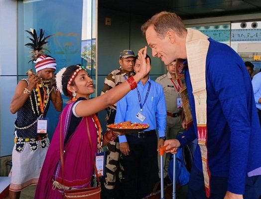 विदेशी डेलिगेट्स का रविवार से छत्तीसगढ़ पहुंचना शुरू हो चुका है। ये सभी 18-19 सितंबर को रायपुर में होने वाली G20 समिट में शामिल होंगे। रायपुर एयरपोर्ट पर ठेठ छत्तीसगढ़िया अंदाज में इन विदेशी मेहमानों का स्वागत किया गया। छत्तीसगढ़ी लुगरा पहनी युवतियों ने सभी को तिलक लगाकर छत्तीसगढ़िया गमछा पहनाया। एयरपोर्ट के बाहर करमा ददरिया नृत्य करते गीत गाते कलाकार नजर आए।