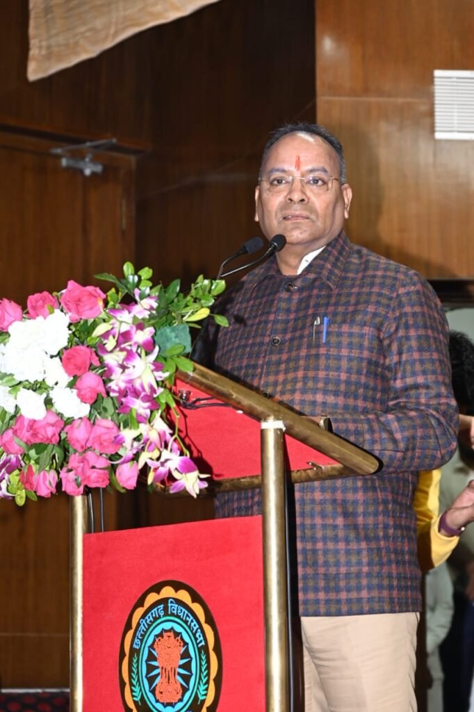 अतिथि वक्ता विधायक एवं पूर्व मंत्री श्री अजय चंद्राकर छत्तीसगढ़ विधानसभा में नवनिर्वाचित विधायकों को कर रहे संबोधित l