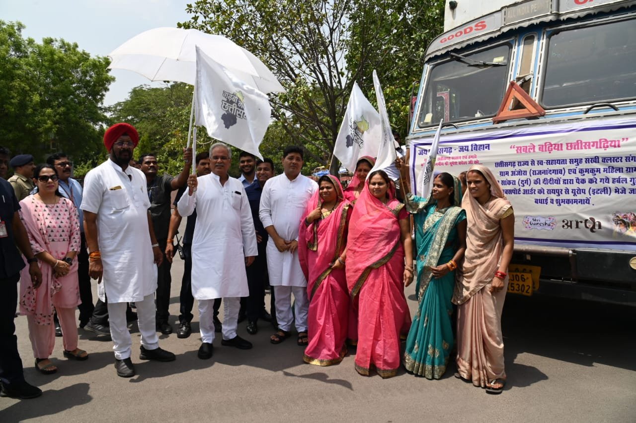 मुख्यमंत्री श्री भूपेश बघेल ने हर्बल गुलाल से भरे ट्रक को यूरोप भेजने झंडी दिखाकर रवाना किया
