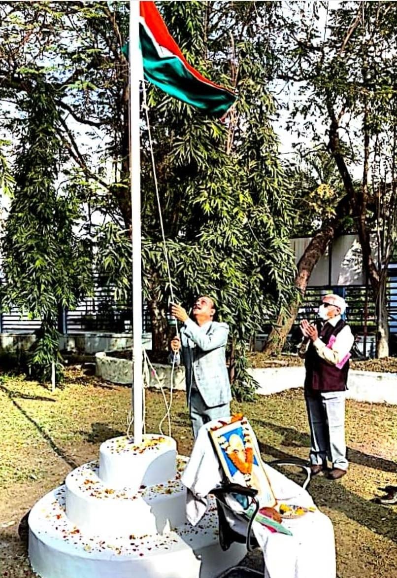 देश के 73वें गणतंत्र दिवस के पावन अवसर पर भूमि अर्जन पुनर्वासन और पुनर्व्यवस्थापन प्राधिकरण, छत्तीसगढ़ रायपुर में हर्ष और उल्लास के वातावरण में ध्वजारोहण कर राष्ट्रीय ध्वज को सलामी दी गयी। इस अवसर पर पुराना पुलिस मुख्यालय परिसर स्थित प्राधिकरण कार्यालय में पीठासीन अधिकारी श्री गोंविंद मिश्रा (उच्चतर न्यायिक सेवा) के द्वारा महात्वा गांधी के तैलचित्र पर माल्यार्पण करते हुए ध्वजारोहण किया गया। ध्वजारोहण के पश्चात श्री गोविंद मिश्रा ने प्राधिकरण के सभी अधिकारियों एवं कर्मचारियों को गणतंत्र दिवस की बधाई एवं शुभकामनाएं दीं।