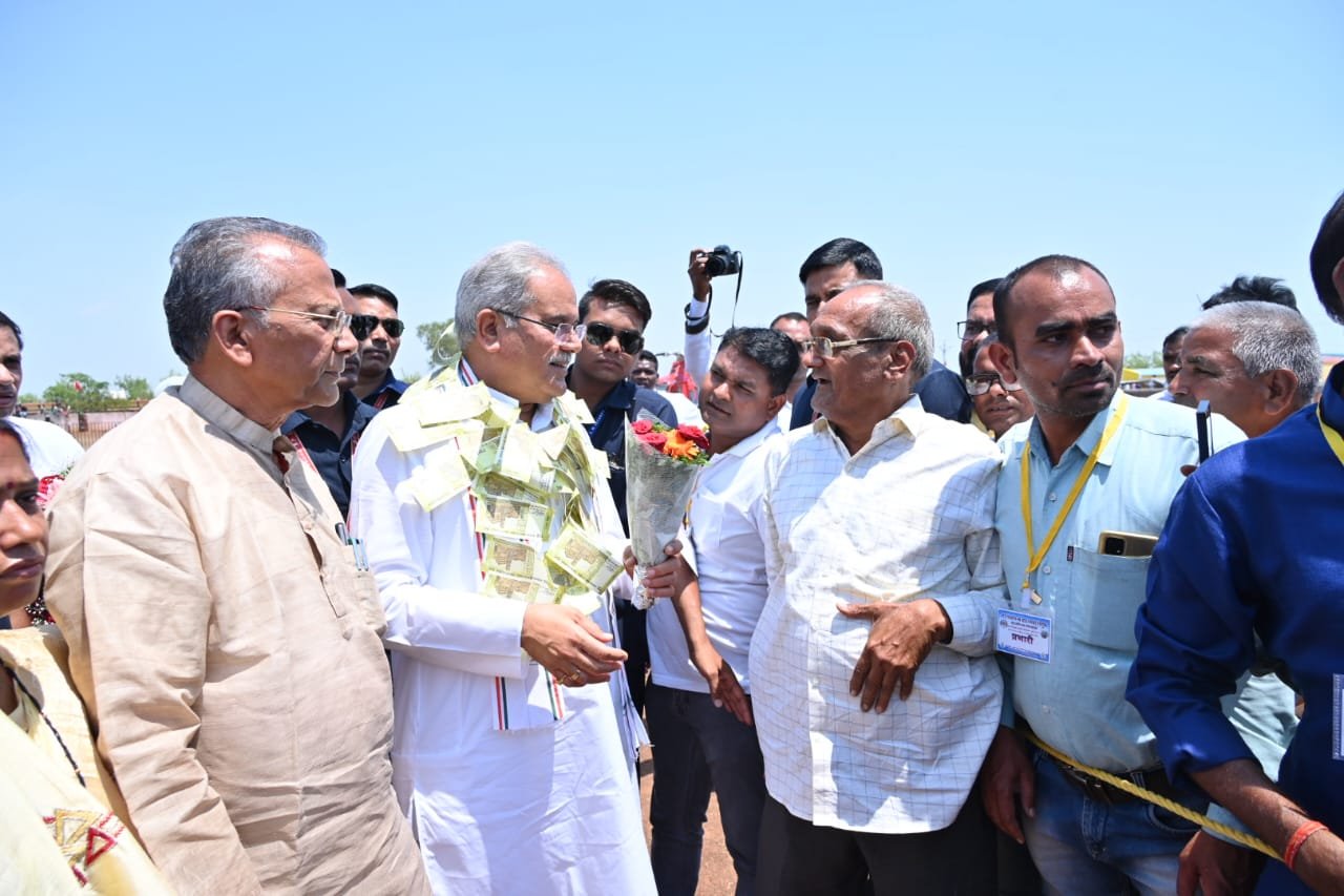 समर्थन मूल्य पर प्रति एकड़ 20 क्विंटल धान खरीदने की घोषणा पर किसानों ने 20-20 रुपए के नोटों से बनी माला पहनाकर मुख्यमंत्री का स्वागत किया।