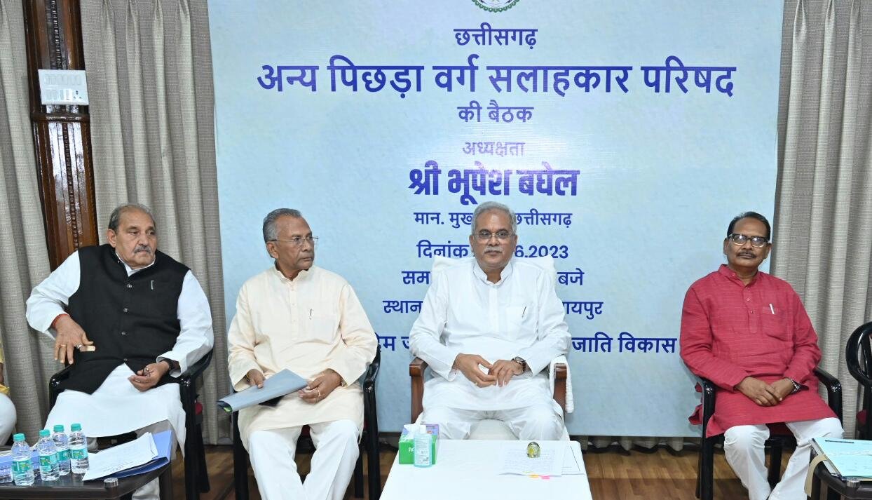 मुख्यमंत्री भूपेश बघेल की अध्यक्षता में उनके निवास कार्यालय में छत्तीसगढ़ अन्य पिछड़ा वर्ग सलाहकार परिषद् की प्रथम बैठक शुरू